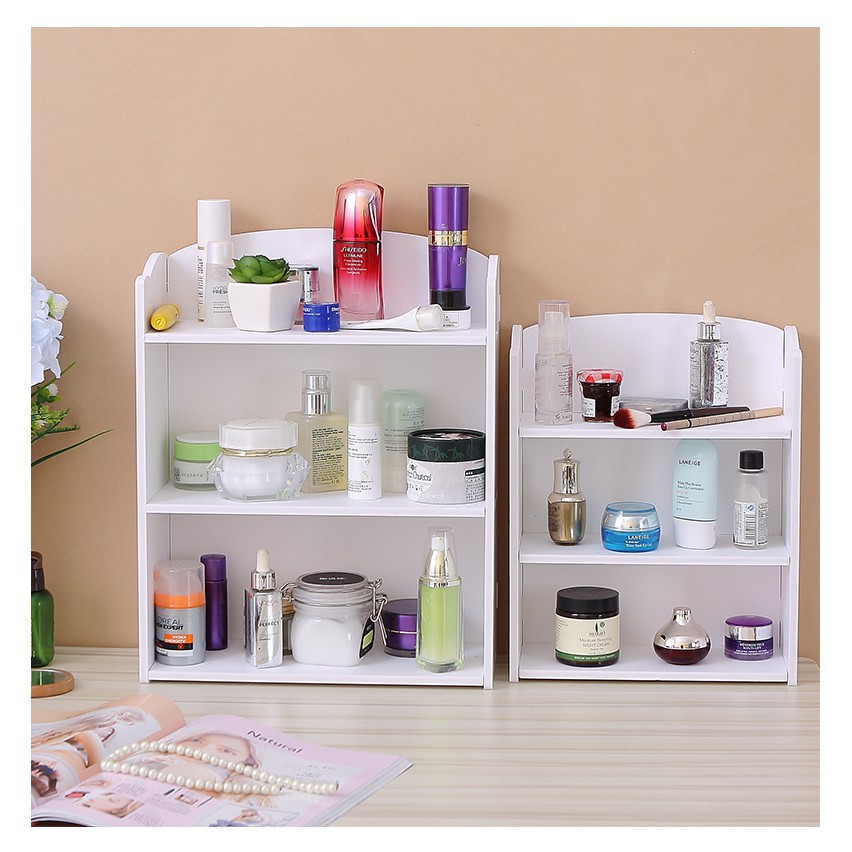 ️Kệ đựng mỹ phẩm 3 ngăn - Chất liệu : Nhựa gỗ, không ẩm mốc, không thấm nước, dễ lau chùi - Kích thước : + Size bé : 26.5 x 11 x 32 cm + Size lớn : 32.5 x 13x 39 cm - Kệ đựng nước hoa, lọ dưỡng ....
