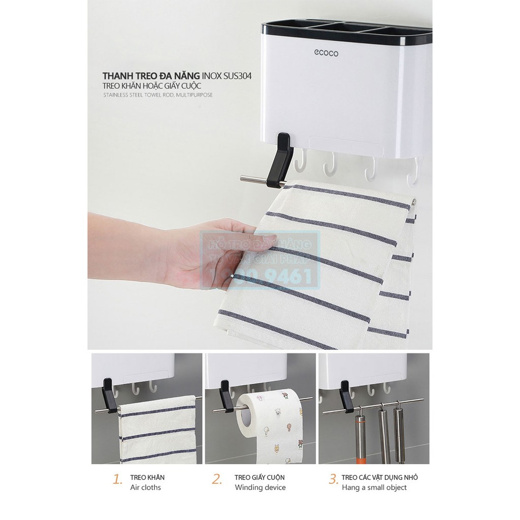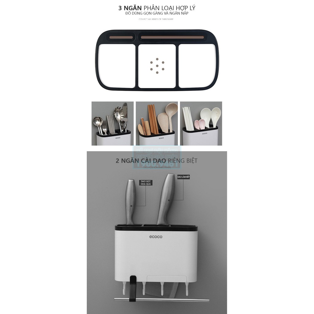 ️• Thương hiệu: ecoco • Chất liệu: Nhựa ABS, PP • Kích thước sản phẩm: 22 x 10 x 13cm (dài x rộng x cao) • Màu sắc: Trắng đen • Bộ gồm: Kệ treo nhà bếp, đựng dụng cụ đa năng (Đầy đủ phụ kiện lắp đặt, không cần khoan tường) • Trọng lượng: 600gam • Chịu được tải trọng lên tới 15kg • Sản phẩm tiện dụng cho không gian nhà bếp gọn gàng, ngăn nắp. • Sản phẩm có thể cố định được trên tường với các miếng dán vững chắc, mà không cần phải đục khoét tường • Sản phẩm thiết kế xinh xắn và hiện đại không càn khoan đục đẽo tường có thể dán trên các bề mặt kính; gỗ; tường gạch