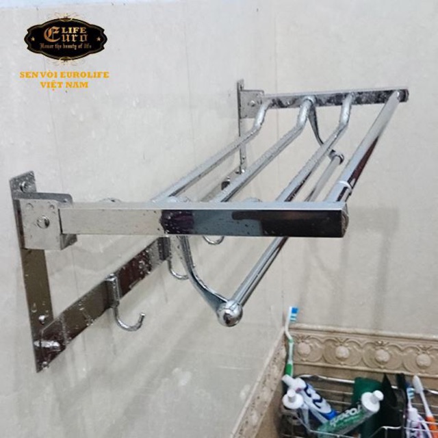 ️Kệ treo khăn tắm inox đa chức năng Eurolife EL-B1 (Trắng bạc) Thương hiệu : Eurolife - Viêt Nam Chất liệu : Inox 201, mạ Chrome sáng bóng, cao cấp Bảo hành : 2 năm Kích thước của sản phẩm : * Chiều dài kệ : 59cm * Chiều rộng đưa ra của kệ : 24cm * Chiều cao tổng thể của kệ : 17cm -Kệ có thể gấp thẳng hoặc bẻ vuông góc 90 độ tiện dụng . Máng treo có thể để khăn sạch gấp khô, phơi khăn ướt và móc khăn tắm, áo quần hay các vật dụng khác. -Kệ được thiết kế cực linh hoạt giúp tiết kiệm tối đa cho không gian phòng tắm của bạn. Khi không có nhu cầu sử dụng, bạn có thể gấp kệ gập sát tường. -Với thiết kế thông minh và linh hoạt , kệ treo khăn tắm inox đa chức năng Eurolife EL-B1 sẽ giúp bạn để được nhiều đồ hơn và tận dụng tối đa không gian của phòng tắm. -Thiết kế chắc chắn, chịu lực tốt ! -Mang nhiều đồ hơn với giá và móc treo, phù hợp với nhu cầu sử dụng nhiều đồ trong ngày. -Hãy nhanh tay để sở hữu một bộ sản phẩm của Eurolife ngay hôm nay ! Sản phẩm mang đến sự đẳng cấp, sang trọng và tinh tế bậc nhất cho phòng tắm nhà bạn, với chất lượng và thời gian sử dụng lâu dài, ưu việt ! Hãy trải nghiệm cùng sản phẩm thương hiệu Eurolife để cảm nhận giá trị chúng tôi mang lại cho khách hàng. Chất lượng, uy tín và dịch vụ hậu mãi tốt luôn là cam kết của chúng tôi. Eurolife nhà sản xuất chuyên nghiệp, thương hiệu hàng đầu cho lĩnh vực sen vòi thiết bị, phụ kiện phòng tắm. #Kenhatam #kebanchai #kenhavesinh #keinoxshopee #kebanchaiinox #kekhonggi #ketrangtri #ketrangtriphongtam #ketrangtrinhavesinh #Kegiare #sikenhatam #Ketreokhantam #ketreodananginnox304