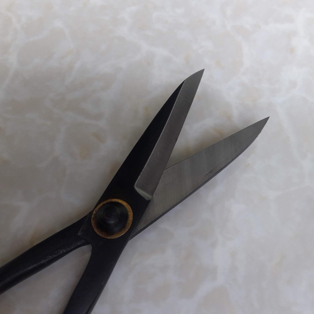 ️Đây là một chiếc kéo đặc trưng, chuyên dùng để cắt tỉa cây cảnh. Nó có những đặc điểm riêng phù hợp với làm cây mà đã được nghiên cứu cải tiến kỹ qua nhiều thế hệ làm cây: lưỡi kéo phải thật bén;độ dài cán kéo phù hợp để lách vào những tán lá rậm rạp;tỉ lệ cán/lưỡi đủ để nhát cắt nhẹ, cắt nhiều không mỏi tay; độ lớn tay cầm vừa đủ để khi không cắt có thể cầm gọn gàng trong bàn tay mà không phải bỏ xuống. Không phải tự nhiên mà ông Robert Steven chọn biểu tượng cho hội của ông ấy là "Kéo đen". Có thể nói kéo cắt tỉa cây cán dài là dụng cụ được sử dụng nhiều nhất khi làm cây cảnh. Chất liệu làm kéo cũng được chọn lọc kỹ. Nếu là inox thì bền/cứng nhưng không bén bằng thép đen. Việc chọn kéo đen hay trắng là tùy thuộc vào sở thích của bạn. Kéo đen sẽ cần phải sử dụng cẩn thận hơn, bảo quản kỹ hơn, nhưng cắt ngọt hơn. Chất liệu làm chiếc kéo này là thép carbon (thép đen, nó không được cho crom hay niken, titan vào để chống oxi hóa. Do đó bạn sẽ cần tra dầu thường xuyên sau mỗi lần sử dụng.) Nếu được sử dụng đúng cách và bảo dưỡng thường xuyên, rất có thể cây kéo này là vật sử dụng nhiều đời không hỏng. Một số lưu ý về cách sử dụng kéo như sau: Không vặn kéo khi cắt, nếu không lưỡi có thể bị vênh. Chỉ cắt 1 nhát dứt khoát, và hơi chéo 1 chút. (Bạn có thấy các võ sĩ đạo chém cây ko➥ họ chém theo đường chéo, 1 phần là vì chém như vậy đường chém sẽ ngọt) Không sử dụng kéo này để cắt dây kim loại, nó được thiết kế để cắt cành cây thôi. Nhà sản xuất cũng khuyên rằng đừng cố cắt cành khô và lớn trên 3mm. Sau khi sử dụng cần chùi sạch nhựa (có thể dùng 1 cục tẩy học sinh để tẩy, hoặc nhỏ dầu vào và chùi kỹ) để đảm bảo độ bén ngọt của lưỡi kéo. Sau đó tra dầu (mình thường dùng loại dầu máy khâu mua 10k/1 lọ) Khi mua chiếc kéo này, bạn được miễn phí vận chuyển, được tặng kèm 10 chiếc túi lọc trà và 1 đoạn ống nhựa để bảo vệ mũi kéo. Ngoài chiếc kéo nguyên bản, mình còn sửa nó chút ít bằng cách tôi lại thép, nhìn sẽ xấu xấu bẩn bẩn chứ không được sáng bóng như nguyên bản, nhưng mình tin nó cứng hơn, và khó bị gỉ hơn. Về độ sắc thì mình đã thử và thấy vẫn bén như cũ (thử cắt dây nilon và thấy rất ngọt) Mô tả chung: Chất liệu thép carbon Chiều dài kéo 205mm, chiều dài mũi kéo 65mm Trọng lượng 134g Sử dụng để tỉa lá/cành dưới 3mm.