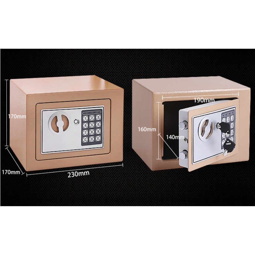 ️#bí_mật #hộp_giấu_đồ #safe #minisafe Nhiều khi bạn cần cất một số kỉ vật, hoặc đơn giản là mấy tờ phiếu bảo hành đồ điện tử trong gia đình nhưng không biết nên để đâu để an toàn, tiện dụng và dễ nhớ. Được hoàn thiện tốt với lớp thép luyện cán nguội khá dày, tổng trọng lượng khoảng hơn 3kg. Hộp sử dụng khóa an toàn chống cạy phá...dĩ nhiên hàn xì và đục phá bằng búa lớn thì chịu thua. Có hai loại khóa có thể sử dụng là khóa mã số (dùng pin tiểu AA lắp bên trong cửa) hoặc dùng khóa chìa tùy theo sở thích chủ nhân. Thích hợp chứa tư trang, album ảnh cưới :)) ...đồ lặt vặt trong nhà như đăng ký kết hôn =))) Khả năng chống cháy tốt, chịu lực va đập tốt đảm bảo ném từ lầu 5 xuống không bung nổi. Lưu ý: có đinh vít và lỗ khoan chờ sẵn phía sau, thích hợp để bắt vít cố định két vào tường, ngăn tủ,... tránh bị kẻ gian di chuyển két ra chỗ khác. Kích thước vỏ ngoài : 17 x 23 x 17 cm. Kích thước bên trong: 16 x 19 x 14cm.