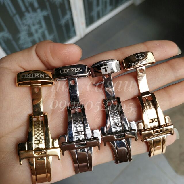 ️Khóa bướm chống gãy gập dây Chất liệu: thép 316 ko rỉ Màu sắc: trắng, vàng, vàng hồng Size: từ size 16mm, 18mm, 20mm, 22mm Bảo hành bay màu 1 năm (bay màu đổi mới) Logo: logo theo đồng hồ của từng khách, khắc laser chìm Khóa bướm 2 gấp giúp tăng tuổi thọ của dây da đồng hồ, dễ sử dụng cho người dùng Khóa bấm bật lò xo (ko phải loại giật) Thiết kế tinh xảo, sắc nét Size khóa khác với size dây, nên khách đo chính xác size khóa giúp em nhé LƯU Ý: khóa này ko phải khóa ZIN, CHÍNH HÃNG (bác nào muốn mua khóa chính hãng thì chỉ có vào chính hãng mua thôi ạ, ngoài thị trường ko có hàng zin đâu ạ) Khách đặt hàng vui lòng GHI CHÚ logo hoặc ib chữ hay hình ảnh logo cần khắc giúp em nhé. VD: logo: ORIENT, TISSOT (hoặc 1 chữ T như trên hình ảnh), CITIZEN.... Vì có nhiều hãng đồng hồ, trong phân loại shop ko liệt kê hết được ạ __________________________ Hotline: 0906052065 (sms, zalo, viber) #khoabuom #khoabam #khoadongho #khoabamdongho #donghoorient #donghotissot #donghocitizen #phukiendongho