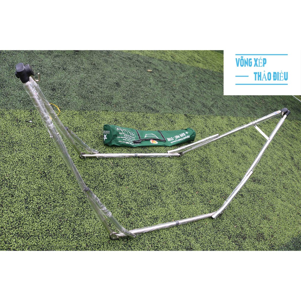 ️Khung võng Inox Ban Mai cỡ người lớn được làm bằng khung inox sáng bóng, sang trọng, không rỉ sét, khung võng cứng cáp, sử dụng ổn định trong nhiều năm. Hỗ trợ giao hàng và lắp đặt tận nhà. Bảo hành chính hãng 12 tháng. Ưu điểm lớn nhất của sản phẩm này chính là inox sáng bóng, đẹp sạch sẽ, thiết kế nhỏ gọn dễ mang đi xa khi cần. Công ty sản xuất: võng xếp Ban Mai Xuất xứ: Tp. Hồ Chí Minh Kích thước khi sử dụng: Dài 230cm – 250cm x Rộng 70cm – 80cm x Cao 70cm – 80cm Kích thước khi xếp gọn: Dài 113 cm x Rộng 19.5cm x Cao 14.5cm Chịu lực tĩnh (không đu đưa): 250 kg Tên sản phẩm: Khung võng xếp Ban Mai inox vip Chất liệu khung võng: được làm bằng inox 201, ống tròn phi 27 Chất liệu võng lưới: Giá trên chưa bao có võng lưới. Chọn mua võng lưới tại: Võng lưới mềm rộng – Khung võng iox vip có thiết kế đẹp, dùng được cho người lớn và trẻ em -Đầu võng được làm bằng bạc đạn loại lớn của Nhật, ru đều và và êm ái khi sử dụng – Giá rẻ hơn nhiều các loại khung võng khác cùng loại bán trên thị trường. – Dễ tháo lắp, dễ di chuyển, an toàn khi sử dụng. – Dễ dàng điều chỉnh được kích thước võng theo nhu cầu sử dụng của mỗi người – 4 góc có lót 4 chân cao su để tăng độ bám trên nền nhà, chống trầy xướt