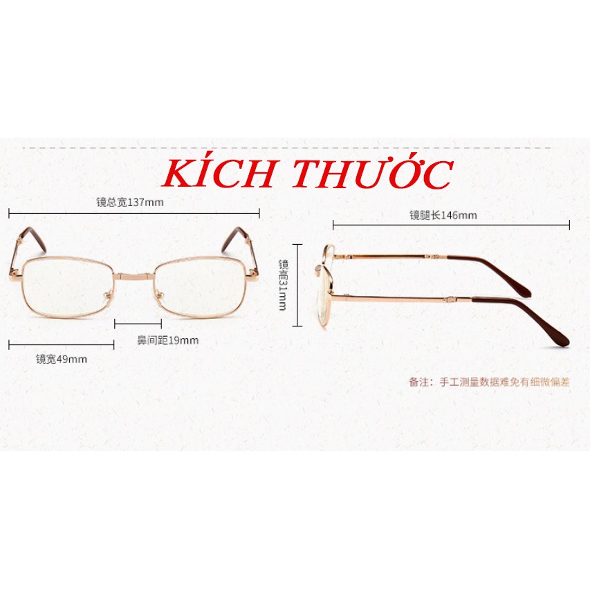 ️KÍNH LÃO THỊ DÀNH RIÊNG CHO CÁC BẬC TRUNG NIÊN, CÁC CỤ GIÀ CAO TUỔI GIÚP ĐỌC SÁCH BÁO RÕ RÀNG, CHỐNG MỆT MỎI , CHỐNG LÓA MẮT. LỰA CHỌN ĐỘ LÃO THỊ CỦA KÍNH THEO TUỔI TÁC: Bắt đầu từ 45 tuổi, cứ sau 5 tuổi, kính đọc sách được tăng thêm 50 độ. Thông thường, những người già khoảng 75 tuổi sẽ không tăng thêm nữa, vì vậy kính đọc sách cao nhất chỉ lên tới 400 độ. 45 - 49 TUÔI: 100+ 50 - 54 TUỔI: 150+ 55- 59 TUỔI: 200+ 60- 64 TUỔI: 250+ 65 - 69 TUỔI: 300+ 70 - 74 TUỔI: 350+ 75 TUỔI TRỞ LÊN : 400+ XUẤT XỨ: TRUNG QUỐC THIẾT KẾ GỌNG KIM LOẠI BỀN, ĐẸP, KHÔNG HAN GỈ, ĐẶC BIỆT CÓ THỂ GẬP GỌN KÍCH THƯỚC , DỄ DÀNG BỎ TÚI. HÀNG FULL BOX KÈM BAO DA BẢO VỆ KÍNH MÀU NÂU , VỪA ĐẸP VỪA SANG TRỌNG. ĐÂY LÀ MÓN QUÀ VÔ CÙNG Ý NGHĨA DÀNH CHO BA MẸ, ÔNG BÀ . #kinhlao #kinhlaothi #kinhonggia #kinhdocsach #kinhmatchonguoigia #kinhcaotuoi #kinhbagia #kinhtrungnien