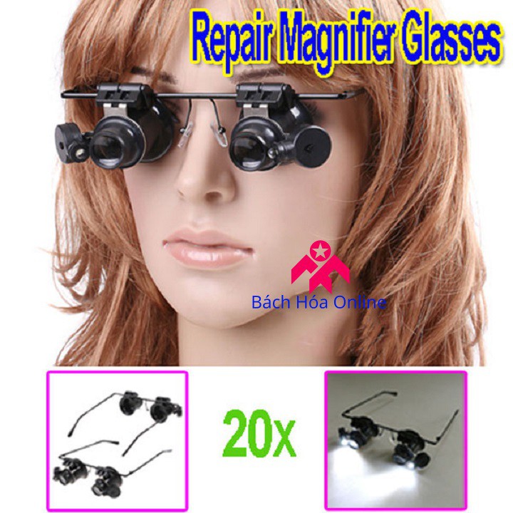 ️??➥ Được thiết kế dạng gọng kính 2 mắt với thấu kính độ phóng đại 20x giúp dễ dàng quan sát những chi tiết nhỏ, những linh kiện điện tử, đồng hồ, đồ trang sức, là công cụ hỗ trợ đắc lực cho các bác dân kỹ thuật. ??➥ Tính năng: - Ống kính quang học chất lượng cao, cùng đèn Led hỗ trợ ánh sáng. - Được sử dụng rộng dãi trong việc sửa chữa đồng hồ, thiết bị điện tử, tham khảo bản đồ, đánh giá cao cổ ... đeo như kính thông thường, rảnh tay thuận tiện hơn nhiều so với kính lúp truyền thống. - Mắt kính có thể di chuyển sang trái, sang phải và có thể xoay 180 độ lên xuống rất linh hoạt. Có thể dùng 1 hoặc 2 mắt cùng lúc. - Độ phóng đại 20x với 2 đèn Led hỗ trợ ánh sáng 2 bên. ??➥ Thông số kỹ thuật: – Model: 9892A – Chất liệu: ABS – Độ phòng đại max: 20X – Kích thước: 170x150x45 mm – Đường kính thấu kính: 16 mm – Chiếu sáng: đèn LED, sử dụng pin cúc CR1620 ???Hotline: 0843422994