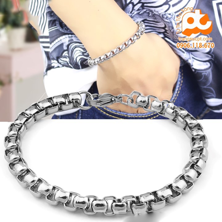 Lắc tay inox nam giá rẻ nhất cá tính không đen tại HCM - PT_3_LT167 (7MM)