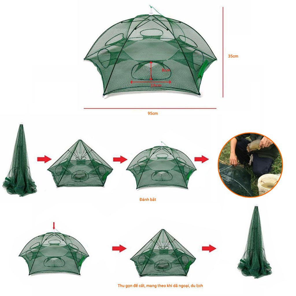 ️Lưới bát quái chuyên đánh bắt cá (8 lỗ) Sản phẩm được làm bằng dây thép cacbon công nghệ cao rất dẻo , bền , không gỉ sét. – Mắt lưới 0,5 cm tôm cá khó có thể lọt được ra ngoài. – Chất liệu nhựa ABS rất nhẹ và bền – Lồng tự bung , khi không sử dụng có thể gấp gọn dễ dàng . – Đường kính khoàng 95 cm , cao 30 cm , cửa hom 12 cm. Lưới bát quái là loại lưới có nhiều mắt, mỗi mắt lưới có một lỗ nhỏ để các loại thuỷ sản chui vào, tuy nhiên, cửa vào của nó lại được xếp lệch để con mồi vào thì dễ mà ra thì khó. Để dụ các con mồi vào, người dân thường sử dụng cám gạo, rang thơm và cột lại thành nhiều viên nhỏ, bỏ vào lưới. Lưới bát quái hiện đang là công cụ hỗ trợ đánh bắt cá được nhiều ngư dân sử dụng hiện nay . CÁCH DÙNG: – B1 : cho mồi vào trong – B2 : quăng xuống nước và cột dây vào 1 cành cây gần đấy – B3 : để 2 – 4 tiếng ra nhấc, sáng sau nhấc tha hồ cá ăn nhậu #hoangkimphukien #luoibaiquat #chuyendanhbat #ca #muangay #hotsale