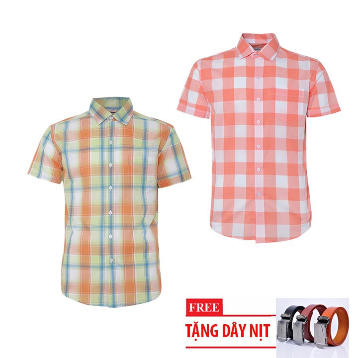 [Mã MAMALL08 hoàn 15% xu đơn 150k] Combo 2 Áo Sơ Mi Nam Sọc Caro Gabofashion Cao Cấp CSM015 tặng dây nịt ( nhiều màu ) - Ngắn tay