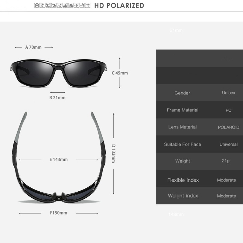 ️Thông tin Sản phẩm - Model : A607 - Gender : Phù hợp cho cả Nam và Nữ. - Chất liệu mắt kính: + Tròng Polaroid, chống tia UV400 – tia cực tím, mang tính thời trang hiện đại và góp phần bảo vệ đôi mắt bạn. + Mắt kính chịu lực tốt,công nghệ tròng kính phân cực Polarized. + Mắt kính dạng mờ dần giúp lái xe chắn được ánh nắng mặt trời nhưng vẫn nhìn rõ ràng. + Gọng được làm bằng nhựa PC (Polycarbonate) - Màu sắc : Đen. - Thiết kế : Phom ôm mặt thể thao, chắn gió, năng động, mạnh mẽ, cực ngầu... - Hộp kèm theo : Hộp đựng, khăn lau. Bảo quản: Tránh cầm vào tròng kính Thường xuyên vệ sinh và lau chùi kính bằng nước rửa, khăn lau chuyên dụng Để kính vào hộp khi không sử dụng. #matkinh #matkinhnam #kinhmat #kinhmatthethaonam #matkinhphancuc #matkinhthethao #kinhmatnam #kinhnamcaocap #matkinhphancucpolarized #matkinhhanghieu #matkinhmat #kinhmatthoitrang #kinhchonguv #kinhchongchoi #kinhramnam