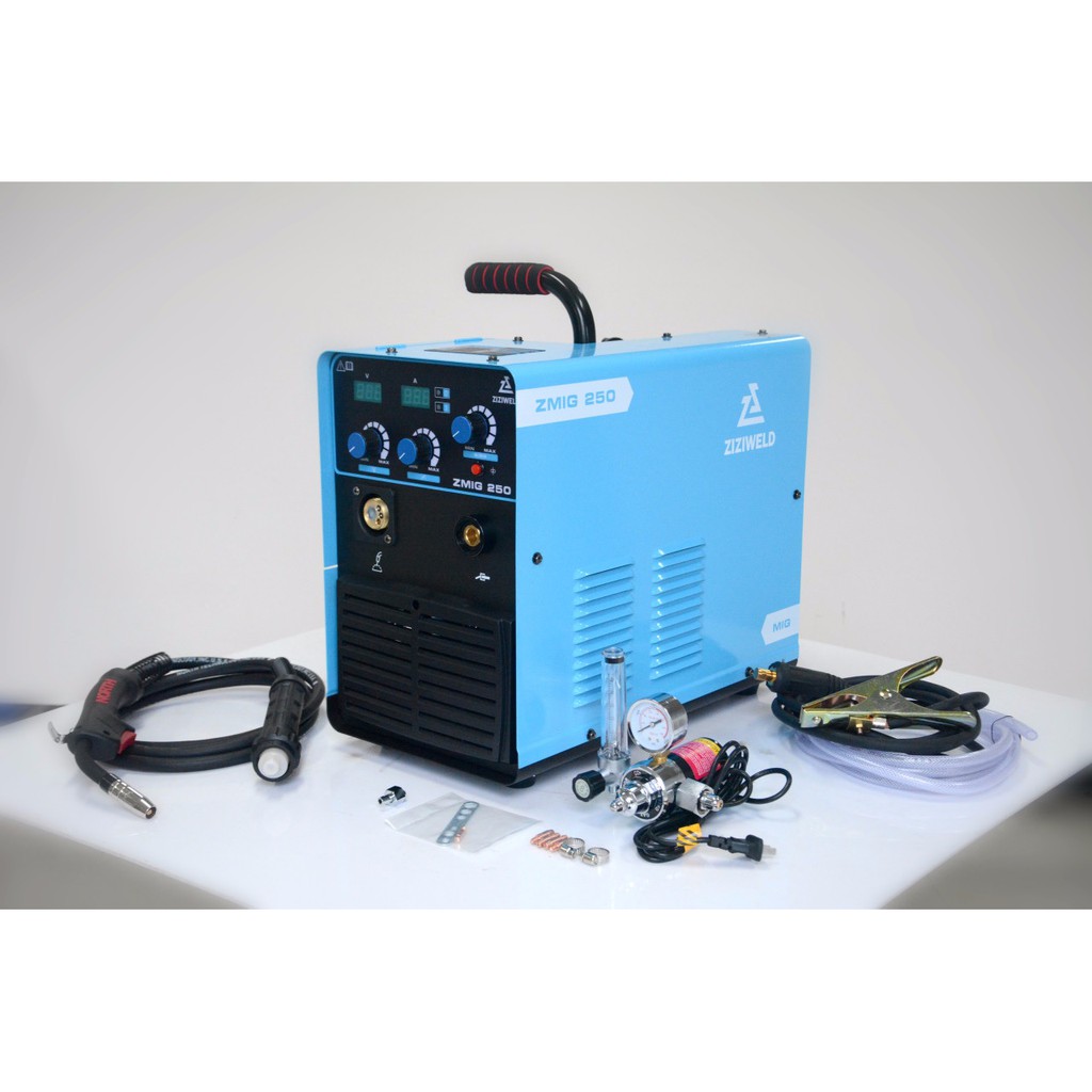 ️THÔNG TIN SẢN PHẨMTHÔNG SỐ KỸ THUẬTNHẬN XÉT Máy hàn Mig Ziziweld Zmig 250 là sản phẩm được sản xuất theo công nghệ hiện đại của Anh được người sử dụng ưa chuộng trên thị trường hiện nay. Có tính năng nổi bật là tiết kiệm năng lượng hơn so với máy hàn thông thường, máy hoạt động mạnh mẽ và bền lâu. Việc sử dụng Máy hàn ziziweld sẽ có hiệu suất làm việc rất cao, thời gian hàn không giới hạn. Ngoài ra, máy còn có chế độ bảo vệ quá nhiệt, quá tải, nguồn điện không ổn định và chế độ chống giật. ỨNG DỤNG: - Máy hàn MIG là máy hàn điện tử dùng phương pháp hàn hồ quang kim loại trong môi trường khí bảo vệ, điện cực chính là dây hàn nóng chảy, được cấp tự động vào vật hàn, môi trường là khí CO2 hoặc Heli, sử dụng bộ cấp dây. - Máy hàn MIG ziziweld chủ yếu sử dụng cho các cơ sở làm đồ sắt như: bàn ghế, cửa, cầu thang,.... Ứng dụng nhiều trong các xưởng mỹ nghệ, bàn ghế, giường,... ƯU ĐIỂM NỔI BẬT : Thiết kế linh hoạt, tiện lợi, bền đẹp: Máy hàn Mig Ziziweld Zmig 250 được thiết kế nhỏ gọn và nhẹ nhàng giúp chúng ta di chuyển một cách dễ dàng và nhanh chóng. - Mối hàn khi hàn sẽ có chất lượng tốt, ngấu sâu và có độ bền cao. - Thích hợp hàn vật liệu 5mm trở xuống. Sử dụng cỡ dây hàn thích hợp nhất có đường kính từ 0.6mm đến 1.0mm. - Có đồng hồ điện tử hiển thị cường độ dòng hàn, điện áp hàn giúp theo dõi được thông số hàn. Có núm điều chỉnh cuộn kháng. Núm điều chỉnh tiếp dây. Đèn báo nguồn, đèn báo quá nhiệt - Dễ dàng cài đặt, dễ dàng vận hành. - Lớp sơn tĩnh điện giúp cho thuận tiện sử dụng máy hàn ở nhiều điều kiện môi trường khác nhau mà vẫn bền máy. - Bộ phụ kiện tiêu chuẩn gồm: 1 súng MIG 15AK, 1 đồng hồ CO2, Dây khí MIG 3m, Kẹp mát 2m. Hoạt động mạnh mẽ, chính xác, an toàn, tiết kiệm điện: - Đảm bảo dòng hàn ổn định, êm. - Với dòng hàn ra ổn định nên đường hàn đẹp và ít bắn toé. Hạn chế ảnh hưởng đến người sử dụng. - Vỏ nhựa ABS chống được nước bắn toé, chống rò điện. - Có chế độ chống giật khi làm ở môi trường ẩm ướt. - Hoạt động ổn định, có chế độ tự động bù áp khi điện áp vào biến đổi. - Có chế độ tự ngắt khi quá dòng, quá nhiệt giúp đảm bảo độ bền của máy. Máy thích nghi tốt khi nguồn là máy phát điện hoặc những nơi có nguồn điện yếu, không ổn định, giảm rủi ro cháy nổ do nguồn điện. - Máy hàn chế tạo theo công nghệ Inverter nên sản phẩm có khả năng tiết kiệm điện so với máy hàn thông thường. Công nghệ hiện đại: - Máy được thiết kế theo công nghệ hiện đại tiết kiệm điện năng mới nhất, máy hoạt động êm ái không ồn ào. - Công nghệ điều khiển tiên tiến đảm bảo độ ổn định, cũng như chất lượng đường hàn. - Sản phẩm đạt tiêu chuẩn chất lượng ISO về an toàn điện cho người sử dụng. THÔNG SỐ KỸ THUẬT Điện áp vào: AC 220 ±15 % (1 pha), 50/60 Hz Công suất định mức: 10.8 KVA. Phạm vi điều chỉnh dòng hàn: 50 - 250A Điện áp không tải: 52V. Chu kỳ tải Imax (40°C): 60% . Hiệu suất: 85%, Hệ số công suất: 0.72. Kích thước 605 x 275 x 570 mm. Trọng lượng riêng máy: 24 Kg. Đường kính dây hàn 0.8-1.2mm. Phụ kiện P1. Súng hàn QTB-3M + Kẹp mát 3M