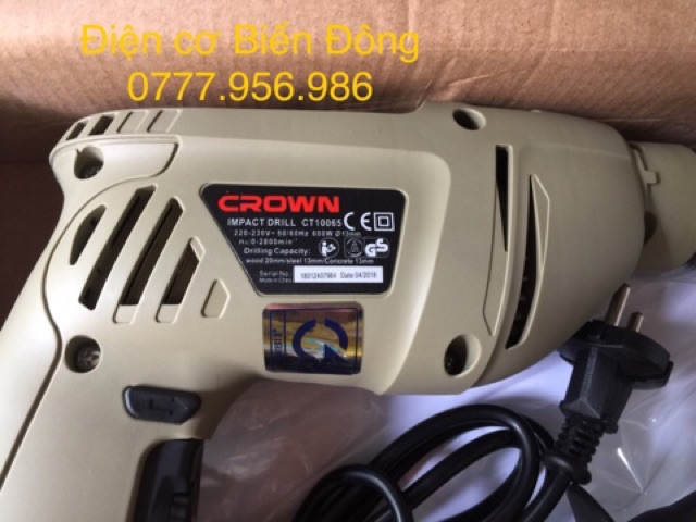 ️ĐIỆN CƠ BIỂN ĐÔNG ►Máy khoan CROWN CT10065 chuyên dùng để khoan bê tông, sắt, tường, gỗ, tôn, bắn vít ►Đầy đủ chức năng: Khoan búa, đảo chiều, điều chỉnh tốc độ. ►Máy sử dụng ruột lõi ĐỒNG NGUYÊN CHẤT 100%, hoạt động mạnh và ổn định, không hư vặt ruột hay công tắc sau 1 thời gian như các dòng máy khác. ► Cam kết dịch vụ và chế độ hậu mãi tốt nhất TPHCM. Bảo hành 6 tháng, 7 ngày đổi trả nếu sản phẩm có bất cứ lỗi nào, hoàn tiền nếu sản phẩm kém chất lượng... ► Phụ kiện đầy đủ nguyên hộp như hình chụp (HÌNH CHỤP THẬT 100%) ---------------------------------------- THÔNG SỐ KỸ THUẬT CỦA MÁY KHOAN: - Công suất : 600W - Tốc độ: 2800r/min - Đường kính khoan : Tường (13mm) - Thép (25mm) - Gỗ (10mm) - Đầu cặp: 13mm - Dây dẫn điện: 2 mét - Xuất xứ: MALAYSIA - Trọng lượng: 2,2 kg ---------------------------------------