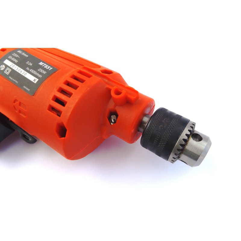 ️Giới thiệu sản phẩm Máy khoan 230W MT651 Máy khoan mini 1 Sản phẩm máy khoan MT651 được sản xuất dựa trên công nghệ hiện đại có công suất 230W mạnh mẽ, làm việc hiệu quả, có thể khoan trên nhiều bề mặt, chất liệu, chắc chắn sẽ làm bạn hài lòng. Máy được trang bị các tính năng tiên tiến và thông minh giúp đáp ứng các nhu cầu khoan chuyên nghiệp. Máy có thể dùng cho công việc gia đình lẫn cho những thợ điện máy, điện lạnh chuyên nghiệp. Với máy khoan MT651 công việc của bạn sẽ trở nên dễ dàng hơn bao giờ hết. Máy khoan mini 2ĐẶC ĐIỂM NỔI BẬT Thiết kế gọn nhẹ Máy khoan MT651 có thiết kế rắn chắc và cứng cáp, thuận tiện làm việc cộng với kích thước gọn nhẹ giúp bạn dễ dàng mang theo, di chuyển hay cất giữ vì không chiếm nhiều diện tích, không gây cản trở. Tay cầm máy khoan vừa khít với bàn tay giúp bạn có cảm giác thoải mái khi sử dụng, không bị mỏi tay khi cầm lâu. Sản phẩm có thể sử dụng được cho cả người thuận tay phải và người thuận tay trái rất tiện lợi. Màu sắc của máy MT651 nổi bật, bắt mắt mang đến sức sống mới cho không gian làm việc máy móc khô khan của bạn. Máy khoan mini 3 Hoạt động mạnh mẽ Với công suất 230W và tốc độ không tải lên đến 4500 vòng/phút, máy hoạt động rất mạnh mẽ và hiệu quả, giúp bạn có thể khoan trên nhiều bề mặt chất liệu như nhôm, gỗ, thép,… một cách dễ dàng. Thiết kế cò súng có độ đàn hồi, bấm nhẹ, không gây đau hay mỏi tay, máy khoan MT651 chắc chắn sẽ làm bạn hài lòng. Máy khoan mini 4 THÔNG SỐ KỸ THUẬT - Công suất: 230W - Thông số kỹ thuật: thép 6.5mm(1/4"), gỗ 9mm(11/32") - Tốc độ không tải: 0-4,500 - Tổng chiều dài 206mm (8-1/8") - Dây dẫn điện : 2.0m (6.6ft) Máy khoan mini 5 Thông tin sản phẩm Máy khoan 230W MT651 (Cam) Bộ sản phẩm bao gồm: 1 x Sản phẩm Đặc điểm chính: Model MT651 Màu sắc cam Kích thước sản phẩm (D x R x C cm) 20 x 07 x 17 Trọng lượng (KG) 1 Sản xuất tại Trung Quốc Thời gian bảo hành 3 tháng Loại hình bảo hành Bằng điện tử mã đơn hàng Quý khách lưu ý: Không bảo hành, đổi trả đối với các trường hợp: rơi vỡ, nứt gãy, rơi nước, hết chổi than, cháy do vật lạ rơi vào.