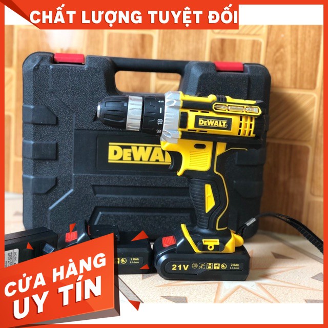 ️MÁY KHOAN PIN DW 26V - MADE IN USA BẢO HÀNH 1 NĂM CHẤT LƯỢNG CỰC TỐT 1. THÔNG SỐ KỸ THUẬT: Chất liệu vỏ máy: Nhựa cao cấp Điện thế pin: 26V Loại Pin Lithium-ion Lực siết/mở vít : Cứng (42Nm); Mềm (24Nm) Dung lượng pin: 1.5Ah Kích thước sản phẩm: 138mm x 79mm x 238mm Tốc độ không tải: Cao (0 - 1500 vòng/phút); Thấp (0 - 400 vòng/phút) Đường kính khoan gỗ: 36mm Đường kính khoan thép: 13mm Màu sắc: Vàng Trọng lượng sản phẩm: 2,5kg Thương hiệu: DW Sản xuất tại: Trung Quốc theo Dây chuyền USA Bảo hành: 12 tháng Phụ kiện bao gồm: Thân máy, 2 pin, 1 sạc, 1 sách hướng dẫn, 1 hộp máy, 2 mũi khoan đi kèm 2. TIỆN ÍCH VƯỢT TRỘI: Thế nào được gọi là máy khoan dùng pin tốt ➥ Đó là chiếc khoan có khả năng đáp ứng tối đa nhu cầu sử dụng của bạn với đầy đủ 5 tiêu chí: chất lượng tốt, độ bền cao; pin máy khoan có dung lượng lớn, tiêu hao năng lượng ít; hiệu suất mạnh mẽ, bền bỉ; thiết kế thông minh, tiện dụng; an toàn tuyệt đối trong suốt quá trình sử dụng; giá hợp túi tiền. Lợi ích bạn có được khi sở hữu Máy Khoan PIN DW 21V - Made in USA này: Làm việc an toàn, hiệu quả cao, giảm bớt được gánh nặng công việc và thời gian lao động. Có thể làm việc linh hoạt ở mọi nơi, kể cả những môi trường khắc nghiệt như nhà xưởng sản xuất, công trình xây dựng… đặc biệt là những khu vực thiếu điện, nguồn điện không đảm bảo. Hiệu quả tối ưu. Máy khoan cầm tay dùng pin cực kỳ đa năng và mạnh mẽ. Nó có thể dùng để khoan bê tông, khoan tường, gỗ, sắt thép và tháo vặn vít chuyên nghiệp, chức năng cụ thể sẽ tùy vào dòng máy bạn chọn là khoan búa dùng pin, khoan động lực dùng pin hay khoan vặn vít… Tiết kiệm tối đa trên mọi phương diện. Khoan pin tốt không chỉ có giá hợp túi tiền, tiết kiệm chi phí đầu tư cho thiết bị lao động mà còn giúp bạn tiết kiệm một khoản tiền không nhỏ cho việc bảo trì, thay sửa máy và cả chi phí sản xuất....