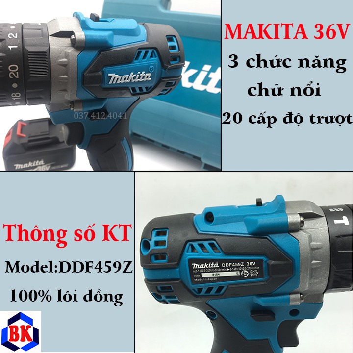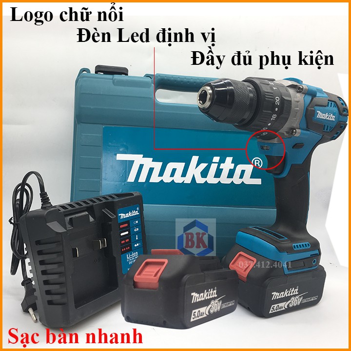 ️Máy Khoan Pin MAKITA 36V - Mẫu Mới 2019 Khi sử dụng chiếc máy khoan Makita 36v có búa, bạn đang sở hữu chiếc máy khoan được tích hợp nhiều chức năng 3 trong 1: khoan thường, bắt vít, khoan tường, bê tông, kim loại,... * SHOP CAM KẾT: ➥ Shop cam kết hàng đến tay giống hình 100% ➥ Hàng lỗi trả lại shop, được kiểm tra hàng trước khi thanh toán ➥ Shop là nguồn sỉ toàn quốc, liên hệ trực tiếp để nhận giá sỉ ưu đãi * THÔNG TIN SẢN PHẨM MÁY KHOAN PIN MAKITA 36V - Pin nguồn: 2 pin Li-ion 36V 5.0Ah - Sạc tiêu chuẩn có đèn báo tự ngắt khi đầy - Lực vặn tối đa cứng/mềm: 42/24Nm - Tốc độ quay: 1300v/p - Tốc độ không tải: 350v/p - Chế độ AutoLock, 100% lõi đồng, không chổi than - Đầu kẹp mũi khoan: 13mm - Hai tốc độ khoan, 3 chức năng: khoan, vít, búa - Đèn led theo máy soi vùng tối khi khoan - Thời lượng 1 pin khi sử dụng liên tục: 2.5-3h - Logo chữ nổi, hàng chuẩn Malaysia - Thiết kế nhỏ gọn, tay cầm được bọc cao su chống trơn trượt - Bộ sản phẩm bao gồm: 1 máy, 1 hoặc 2 pin tùy bạn lựa chọn, 1 sạc, 1 mũi khoan, 1 hộp nhựa. - Kích thước: 239mm x 83mm x 240mm ➥ TẶNG 1 MŨI KHOAN TƯỜNG ? * TÍNH NĂNG VƯỢT TRỘI: - DUNG LƯỢNG PIN CỰC KHỦNG CHUAAEN 10 CELL 5Ah: máy được cải tiến với công nghệ sạc nhanh, cải thiện thời gian sử dụng. - THIẾT KẾ PHÙ HỢP: Thân máy được làm từ chất liệu cao cấp, đầu khoan bọc thép. Máy được làm bằng nhựa và tay cầm được bọc một lớp cao su tạo độ nhám cao giúp chống trượt, chịu nhiệt và cách điện. Thiết kế này vừa tạo cảm giác chắc chắn, êm tay, vừa đảm bảo an toàn cho bạn kể cả khi bị ra mồ hôi tay hay tay bạn đang bị dính dầu nhớt trong lúc làm việc. - CHỨC NĂNG: Máy khoan Pin Makita 36V đa năng; khoan búa, khoan bắt vít, khoan thường. Máy cũng có chức năng đảo chiều vô cùng tiện lợi cùng 2 nút điều chỉnh tốc độ. - ĐÈN LED định vị, tiện lợi hơn khi làm việc chỗ tối ➥ CƠ KHÍ BÁCH KHOA BẢO HÀNH: 1 ĐỔI 1 TRONG VÒNG 15 NGÀY NẾU SP BỊ LỖI CAM KẾT HÀNG GIỐNG MÔ TẢ, HÌNH SHOP TỰ CHỤP ĐƯỢC KIỂM TRA HÀNG TRƯỚC KHI THANH TOÁN? #makita36v #makita36vcobua # 36v #chinhhang #maykhoan #maykhoandungpin #maykhoan3chucnang #maykhoanautolock #13ly