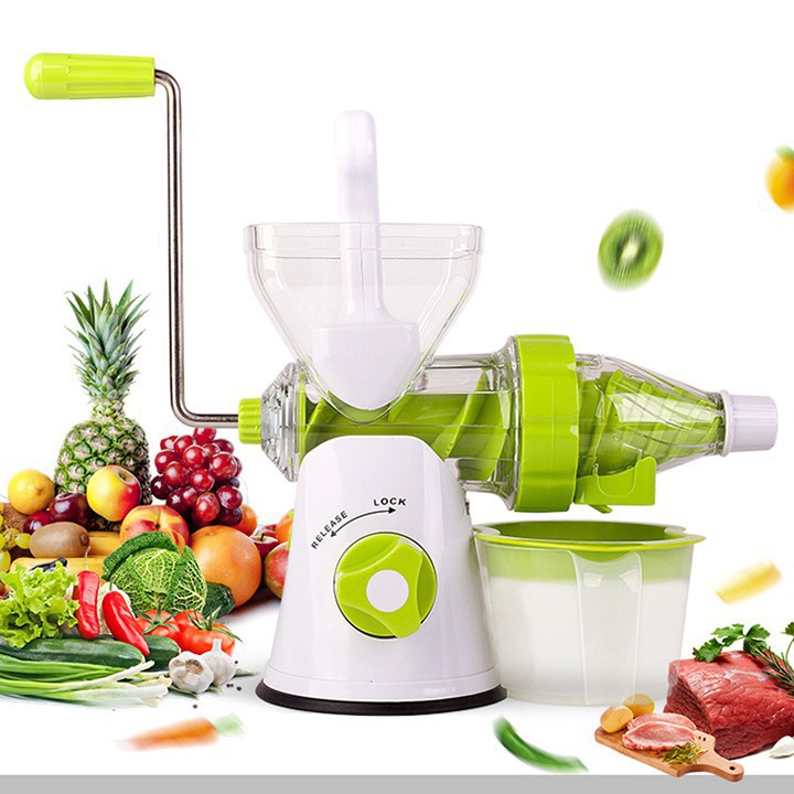 T️hông tin sản phẩm: – Tên sản phẩm: Máy xay ép hoa quả Manual Juicer – Kích thước sản phẩm (D x R x C cm): 22x13x10 – Trọng lượng: 0.9 (Kg) – Màu sắc: Trắng phối xanh – Lưỡi dao làm bằng Inox 420 – Đế và cối bằng nhựa ABS – Công nghệ Slowjuicer tách nước khỏi bã ép trái cây Sản phẩm sử dụng công nghệ ép với tốc độ chậm sử dụng công năng để ép, với thiết kế hệ thống trục vít cưỡng bức hoạt động hiệu quả nhất và cho ra nước ép chất lượng tốt nhất mà hoàn toàn không hề sử dụng đến điện năng hay nhiên liệu khác. Máy Xay Ép Đa Năng 2in1 Manual Juicer bạn chỉ cần dùng tay quay là máy đã cho ra kết quả là những ly sinh tố thơm ngon, bổ dưỡng mang đến cho cơ thể của bạn Hãy nhanh tay liên hệ để sở hữu cho mình sản phẩm độc đáo này nhé