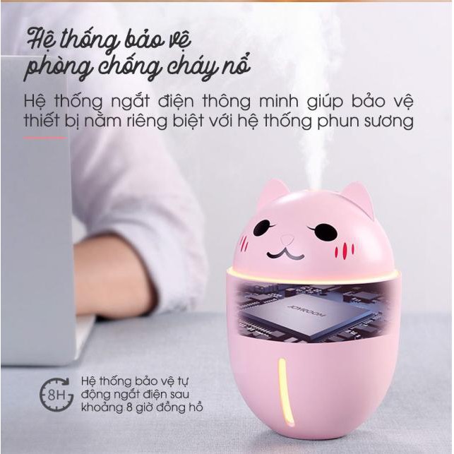 ️- Tên sản phẩm : Mèo con tạo sương - Điện áp : 5V (cổng usb) - Dòng điện : 400mA - Công suất : 2W - Dung tích bình đựng nước : 320ml - Lượng sương tỏa ra : 25 - 35ml/ giờ - Kích thước : 93 x 134.8mm - Chất liệu : PP/ ABS/ Silicon - Khối lượng : 155g