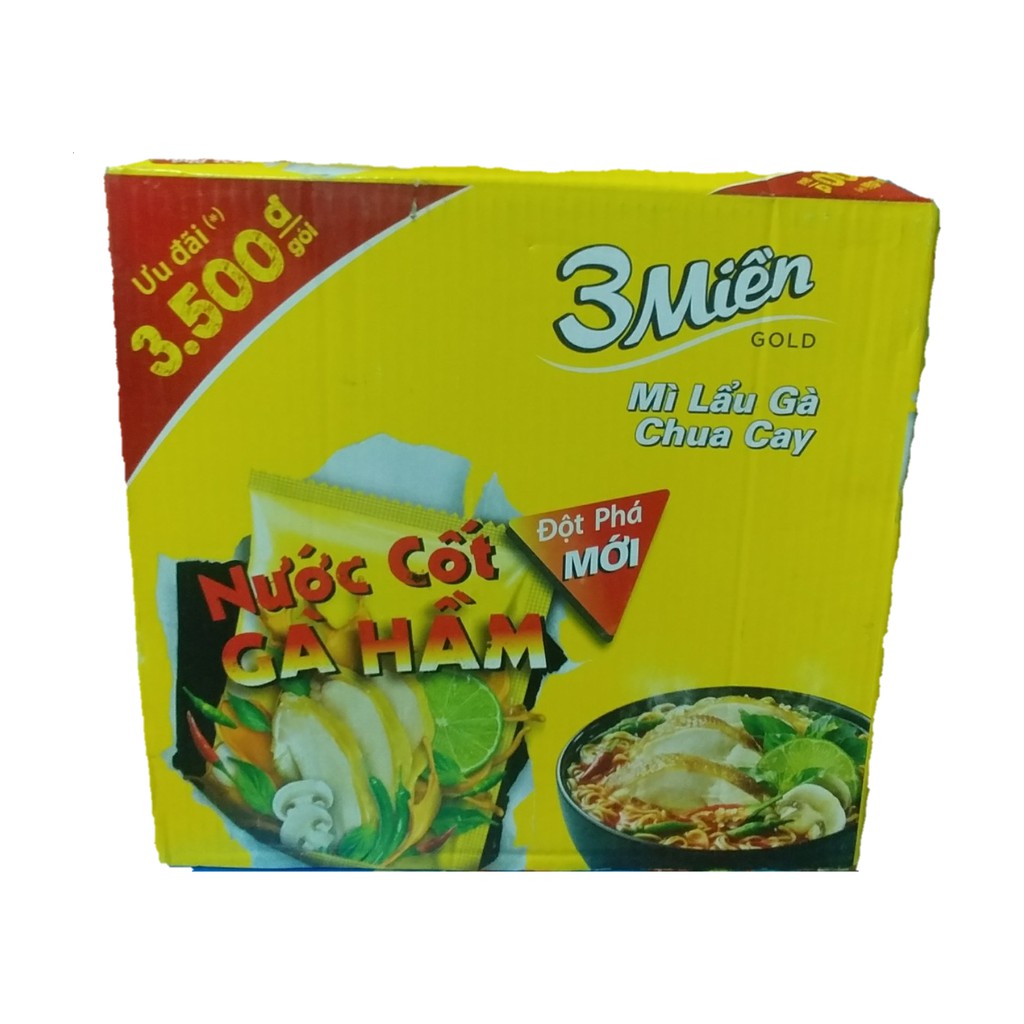 ️Thông tin sản phẩm Vị Nước Cốt Gà Hầm Sợi mì Vàng, nhỏ, dai Loại mì Mì nước Sản xuất tại Việt Nam Khối lượng 75g / gói (30 gói) Thành phần Bột mì, bột tôm, dầu cọ, muối, đường, tỏi, bột ớt, hành lá sấy, ngò gai sấy,... Cách dùng Cho 400ml nước sôi vào mì và các gói gia vị. Đậy nắp kín trong khoảng 3 phút. Bảo quản Để nơi khô ráo, thoáng mát tránh ánh nắng mặt trời. Thương hiệu 3 Miền