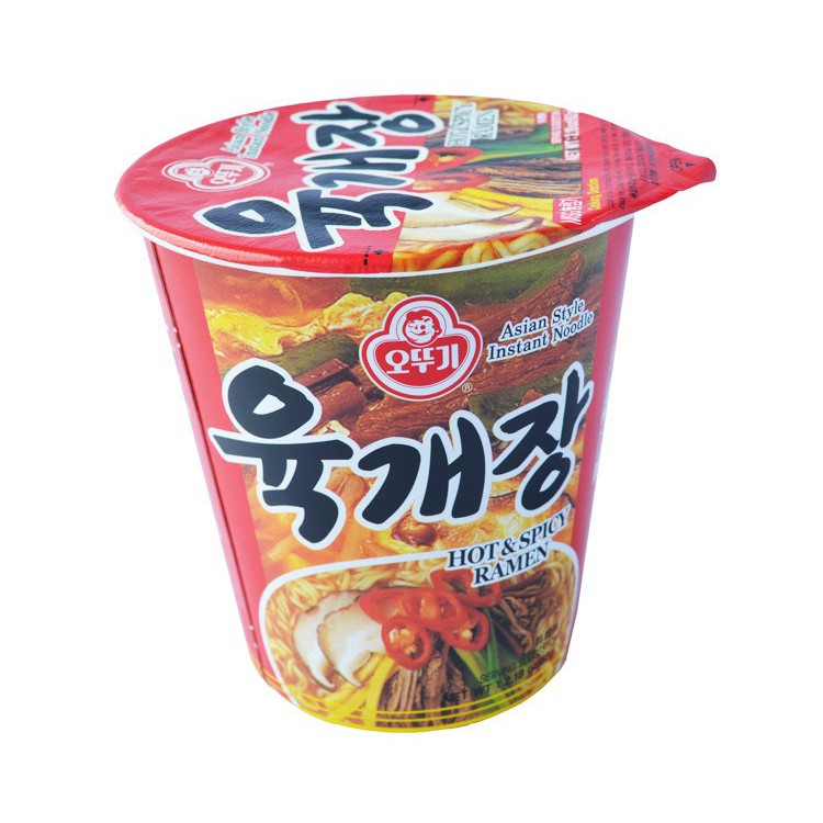 ️mì súp bò cay ly ottogi Thông tin sản phẩm Thành phần: Mì: Bột lúa mì (61.18%), bột khoai tây, tinh bột khoai tây biến tính (INS1420), dầu cọ, muối, chất nhũ hóa (lecitin (INS322(i))), chất ổn định (Kali carbonat (INS501(i)), chất điều chỉnh độ acid (natri polyphosphat (INS452(i)). Bột súp: Muối, glucose, bột ớt, protein thực vật thủy phân, đường, bột chiết xuất nấm men, chiết xuất tảo biển, bột nước tương, bột tỏi, tiêu, bột chiết xuất thịt bò (22.83%), bột chiết xuất tương bò (0.9%), chiết xuất ớt. Hỗn hợp rau củ sấy: Hành lá, nấm, ớt, Protein từ thực vật. Thông tin cảnh báo: Thành phần có chứa lúa mì, đậu nành. Khối lượng tịnh: 62g/gói. Chỉ tiêu chất lượng chủ yếu trong 62g: Carbohydrate ≥ 36g. Hướng dẫn sử dụng: Mở nắp và cho các gói gia vị ra, đổ nước sôi tới vạch bên trong ly, đậy nắp chờ 3 phút rồi trộn đều và thưởng thức. Hướng dẫn bảo quản: Để nơi khô ráo, thoáng mát. Tránh ánh nắng trực tiếp. Xuất xứ: Hàn Quốc. Sản xuất tại: Ottogi Ramyon Co., Ltd. NK & PP: Cty TNHH Ottogi Việt Nam.
