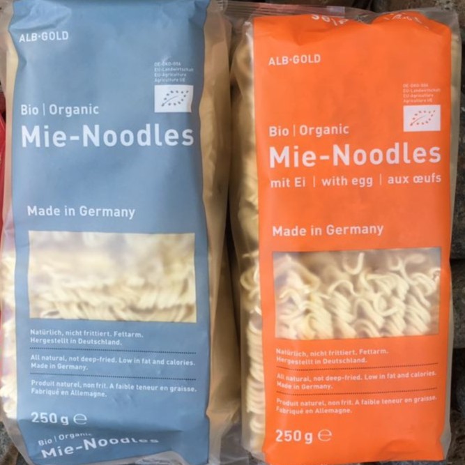 ️Mì ăn liền hữu cơ Alb Gold có 2 loại: + Mì không trứng (gói màu xanh) : Organic Wheat Flour, Organic Durum Wheat Semolina. + Mì trứng (gói màu cam): Organic Wheat Flour, Organic Durum Wheat Semolina, Organic Eggs (10%). Được sản xuất theo công nghệ Đức, nguyên liệu tự nhiên hữu cơ, không chứa hương liệu hay phụ phẩm tổng hợp hóa học, quy trình sản xuất sấy chín từ hơi nước, bảo toàn chất dinh dưỡng, Alb Gold áp dụng công nghệ sản xuất đặc biệt, không cần qua công đoạn chiên sợi mì với dầu nhưng các sợi mì vẫn được làm chín giòn tự nhiên và an toàn hơn cho sức khỏe. Đây là ưu điểm vượt trội giúp khách hàng chọn lựa mì ăn liền Alb Gold thay thế cho các loại mì ăn liền công nghiệp trên thị trường. Gói 250gr bao gồm 4 miếng HDSD : - Thời gian nấu : 4-6 phút. Nấu đến độ chín theo ý muốn hoặc đổ nước sôi vào và để khoảng 9 phút. - Nấu hoặc trần trong thời gian ngắn, sau đó cho vào xoong hoặc chảo chế biến cùng với rau củ chiên cay, hải sản, rau thơm tươi sống và gia vị. Bảo quản nơi khô ráo thoáng mát. Tránh nguồn nhiệt và ẩm ướt. Chứng nhận hữu cơ Châu Âu. #mì #mỳ #huuco #hữu_cơ #markal #trứng #không_trứng #organic #alb #250g