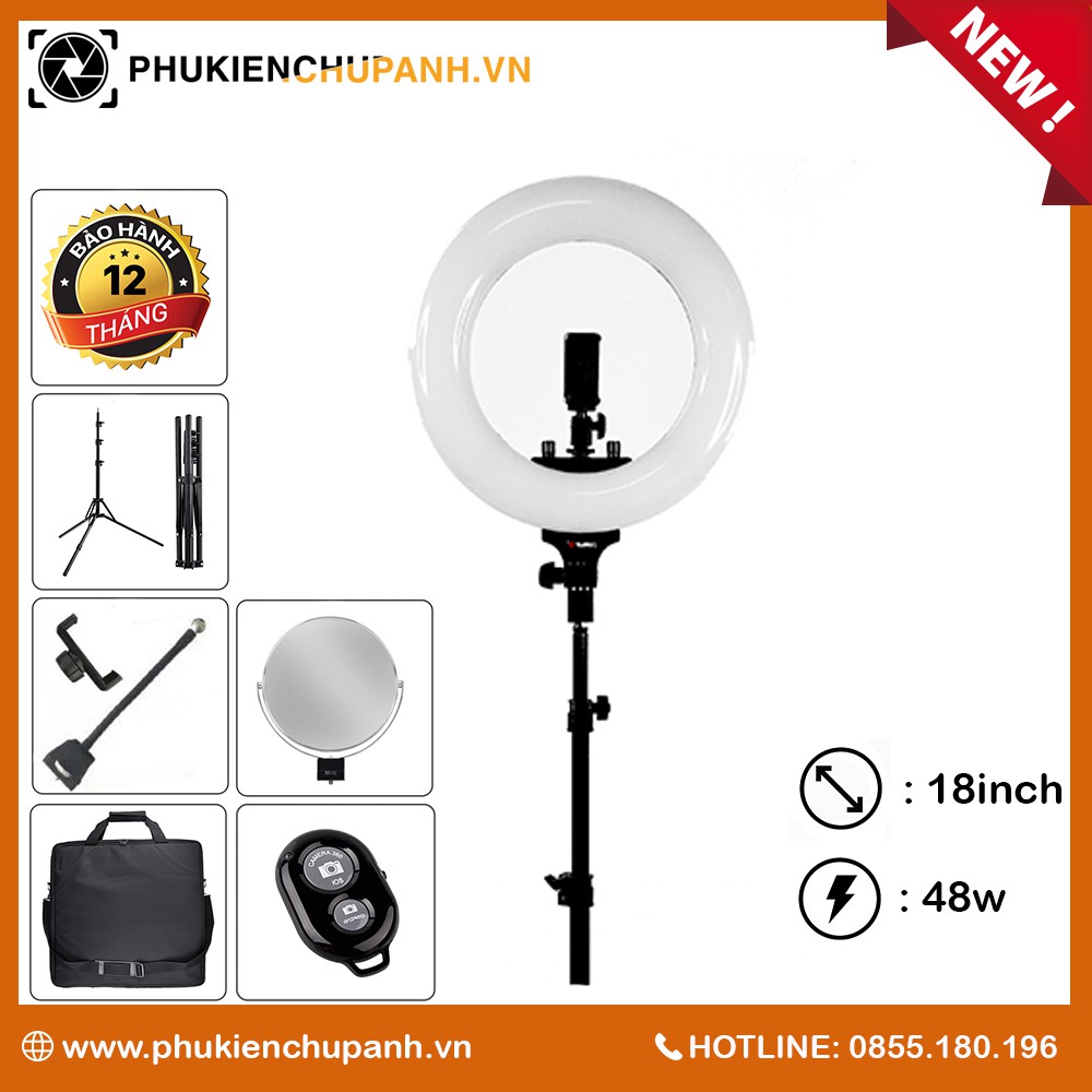 ️THÔNG SỐ SẢN PHẨM – Thương hiệu: TOLIFO – Công suất lớn nhất 48W – Kích thước vòng LED: 18 inch – Nhiệt độ màu: 3200K – 5600K – Ba chế độ điều chỉnh ánh sáng: vàng, trắng và trung tính – Chân đế di động, tuy chỉnh kích thước BỘ SẢN PHẨM BAO GỒM 1/ Led ring 18 inch – 48W 2/ Tripod 3/ Giá đỡ điện thoại 4/ Gương trang điểm 5/ Dây nối 6/ Túi đựng và hộp MÔ TẢ #đèn_livestream trợ sáng Tolifo 2in1 18inch #Sản_phẩm_studio_không_thể_thiếu Đèn livestream Tolifo là bộ sản phẩm được thiết kế hoàn hảo dành cho công việc nhiếp ảnh, chụp chân dung, livestream, quay video youtube, vlogs và các hoạt động tại beauty salon. Bộ kit tích hợp vòng đèn led 18inch, chân đế, giá đỡ điện thoại thông minh và cả gương trang điểm cung cấp khung nền hoàn hảo và tinh tế. Đèn livestream trợ sáng Tolifo 2in1 18inch không chỉ là nguồn cung ánh sáng, công dụng mà nó mang lại còn nhiều hơn thế nữa. #Công_nghệ_tiên_tiến Công nghệ LED 2019 được trang bị trên đèn livestream Tolifo giúp làm tăng hiệu năng sử dụng, kéo dài tuổi thọ sản phẩm lên tới hàng chục ngàn giờ hoạt động. Ngoài nguồn điện trực tiếp, có thể dùng nguồn pin dự phòng. Thiết kế trực quan, thân thiện giúp đễ dàng cài đặt và sử dụng. Các công tắc cho phép mở nguồn, thay đổi cường độ sáng và nhiệt độ màu. Phần chân đế tripod của sản phẩm đèn livestream trợ sáng Tolifo 18inch được là từ chất liệu ABS cao cấp. Khi cần, bạn có thể tùy ý điều chỉnh độ dài, gấp gọn đặt trong túi xách và di chuyển. #Nguồn_sáng_vượt_trội Đèn livestream Tolifo cung cấp chùm ánh sáng nhẹ nhàng và sắc nét. Thang nhiệt độ màu dao động từ 3200k – 5600k cho ánh sáng màu trắng, vàng và trung tính. Ngoài ra, độ sáng của đèn livestream trợ sáng Tolifo 2in1 18inch cũng có thể thay đổi từ 10 – 100% tùy mục đích sử dụng. THÔNG TIN BẢO HÀNH – Sản phẩm cam kết chính hãng với tiêu chuẩn chất lượng cao – Bảo hành 12 tháng chính hãng, hỗ trợ lỗi 1 đổi 1