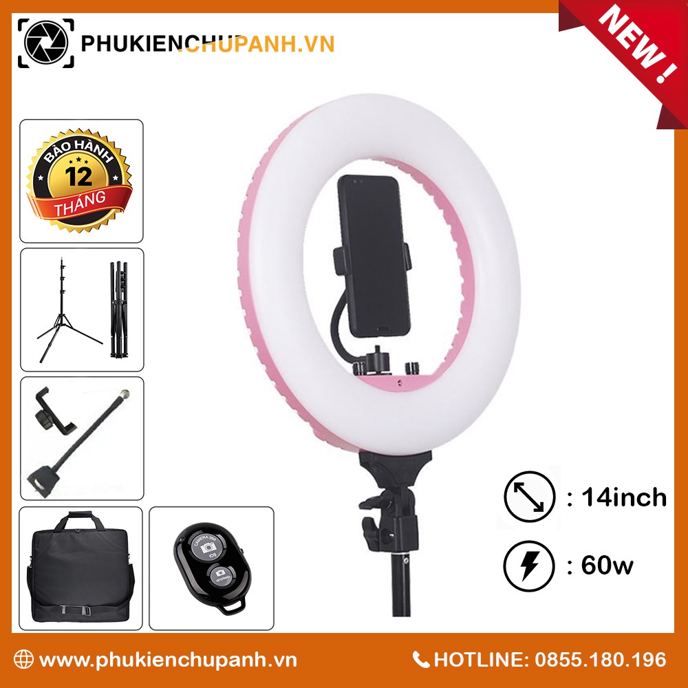 ️THÔNG SỐ SẢN PHẨM #Đèn_livestream 60w-14inch – Thương hiệu: SLOP – Công suất lớn nhất 60w – Kích thước vòng LED: 14 inch – 2 núm điều chỉnh sáng – Hỗ trợ 3 nguồn ánh sáng: ánh sáng trắng, vàng và trung tính – Chân đế có thể điều chỉnh độ cao, khung thép mạ tĩnh điện, đường kính lớn và chắc chắn. – Công nghệ LED 2019 mới nhất giúp tăng tuổi thọ lên đến 20000 giờ BỘ SẢN PHẨM BAO GỒM: 1/ Đèn Led livestream 14 inch – 60w 2/ Remote chụp hình bluetooth 3/ Giá đỡ điện thoại 4/ Dây cáp nguồn 5/ Tripod 6/ Hộp carton và túi vải MÔ TẢ SẢN PHẨM #Sản_phẩm_đa_năng Đèn led Livestream 60w – 14inch là thiết bị hỗ trợ hoàn hảo cho mọi nhu cầu livestream bán hàng, makeup, làm đẹp tại các spa, phục vụ chụp hình tại studio hay các shop chụp sản phẩm. Thiết kế thông minh tích hợp đèn trợ sáng, chân đế và kẹp điện thoại tạo điều kiện tối ưu khi bạn tiến hành công việc. Đèn led livestream siêu chắc chắn, giúp việc livestream, quay video, chụp ảnh dễ dàng hơn bao giờ hết. Ngoài ra, bạn hoàn toàn có thể tùy biến điều chỉnh các bộ phận như độ rủ của đèn, độ cao hay cường độ ánh sáng theo yêu cầu. #Chế_độ_ánh_sáng_thông_minh Thiết bị đèn led livestream hỗ trợ việc quay video, chụp ảnh, makeup hay livestream với chất lượng ánh sáng chất lượng cao. Nút điều chỉnh sáng cho phép tùy biến độ sáng ở ba mức trắng, vàng và trung tính. Sản phẩm tạo ra phần nền hoàn hảo với màu sắc đẹp lung linh, bắt mắt mà vẫn vô cùng chân thực. Khung đèn được đặc biệt làm theo hình chiếc nhẫn, giúp bạn vẫn được cung cấp đủ sáng ầm không bị chói mắt khi nhìn thẳng. Hơn nữa, khả năng quay 180 độ cho phép bạn tạo ra nhiều góc chiếu sáng đa dạng hơn. #Công_năng_tuyệt_vời Ngoài ra, đèn led livestream 60w – 14inch hoàn toàn có thể thay thế đèn chiếu sáng đặc dụng tại các spa, tiệm nail hay studio chụp ảnh. Chỉ cần đầu tư một lần là có thể sử dụng cho mọi công việc của bạn. THÔNG TIN BẢO HÀNH – Sản phẩm cam kết chính hãng với tiêu chuẩn chất lượng cao – Bảo hành 12 tháng chính hãng, hỗ trợ lỗi 1 đổi 1