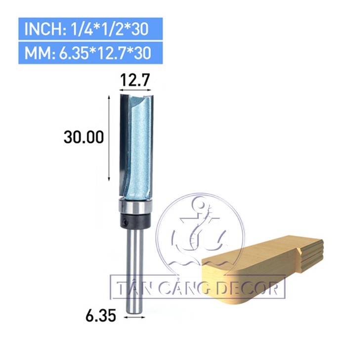 ️Chất liệu hợp kim cứng, dày.Sản phẩm chuyên dụng phay thẳng bi trên. Kích thước : 30 x 12.7 mm Sử dụng với máy phay 6.35 mm Xuất xứ : Trung Quốc. Hãng TideWay.