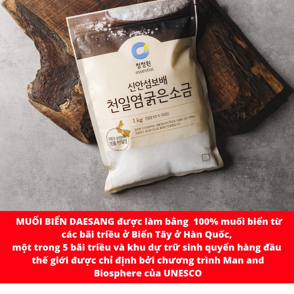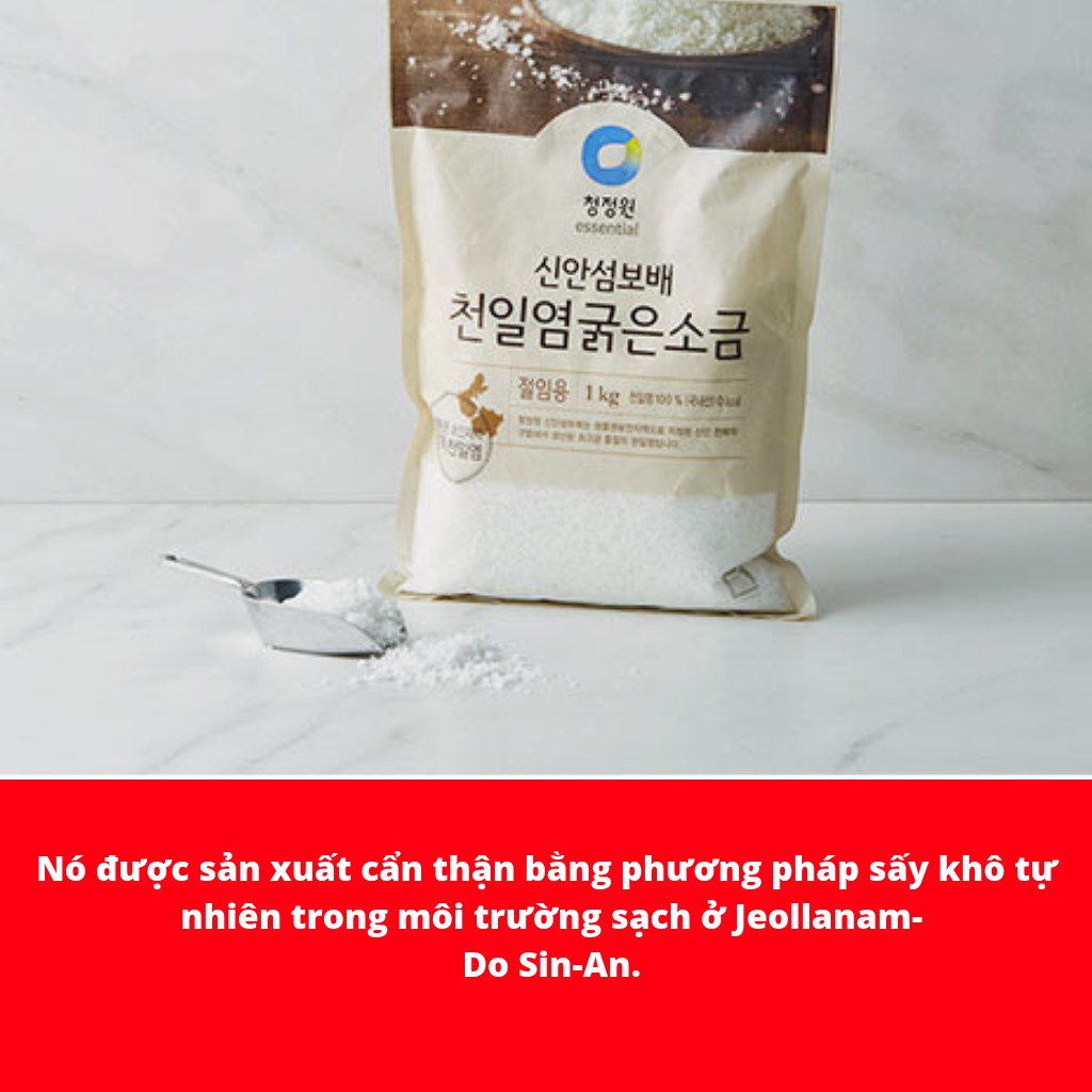 ️Muối biển DAESANG Hàn Quốc 1kg[청정원] 천일염굵은 소금 1kg được sản xuất theo quy trình tiêu chuẩn nghiêm ngặt nên chất lượng từng hạt muối được bảo đảm an toàn tuyệt đối. Muối được sử dụng trong nấu nướng, tẩm ướp, mang đến hương vị đậm đà khó quên. Công ty Daesang – thành lập năm 1956 với 100% vốn trong nước, là công ty thực phẩm tổng hợp hàng đầu Hàn quốc với kỹ thuật lên men tiêu chuẩn thế giới trong suốt nửa thế kỷ qua. Áp dụng nền tảng kỹ thuật tích lũy được từ lên men vào ngành sản xuất thực phẩm, Daesang đang dẫn đầu về văn hóa ẩm thực khỏe mạnh, phong phú cho người tiêu dùng bằng việc sản xuất các sản phẩm tương truyền thống như tương ớt Soonchang, gia vị tổng hợp như gia vị Matnawa, gia vị Gamchimin, gia vị thế hệ 3 sử dụng nguyên liệu tự nhiên Matsunsang, nước uống tiêu biểu Masinun Hongcho, thực phẩm nông thủy sản như Nước mắm, các thực phẩm chế biến từ thịt Hsd: 3 năm kể từ ngày sản xuất