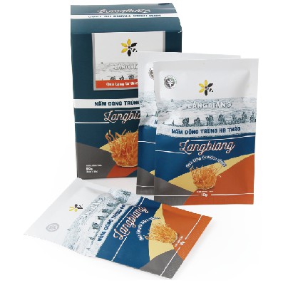 ️*Thành phần: Đông Trùng Hạ Thảo (Cordyceps Militaris) *Trọng lượng: Nấm đông trùng hạ thảo Langbiang hộp 50g (gồm 5 túi 10g) *Công dụng: -Tăng cường chức năng thận, phổi -Hỗ trợ phòng chống ung thư -Tăng cường chức năng sinh lý và hỗ trợ điều trị vô sinh -Điều hòa đường huyết phòng chống tiểu đường -Tăng cường các hoạt động trao đổi chất trong cơ thể và tăng sức đề kháng cho cơ thể -Giúp trẻ hóa tế bào da hồng hào -Giảm mệt mỏi stress, giảm cholesterol *Hướng dẫn sử dụng: nấm đông trùng hạ thảo Langbiang được sử dụng bằng nhiều cách như: hãm trà dùng, ngâm rượu, ngâm mật ong, nấu cháo, nấu canh hầm chung với xương thịt, đặc biệt khi dùng chung với các món lẩu để đạt được giá trị ẩm thực ngon nhất. *Đối tượng sử dụng: phù hợp cho mọi đối tượng và giới tính, hạn chế dùng cho trẻ em dưới 5 tuổi. Dùng được cho người ăn chay. *Xuất xứ: được nuôi trồng và sản xuất tại Trường ĐH Đà Lạt *Hạn sử dụng: 24 tháng *Bảo quản: ở nơi khô ráo, thoáng mát, tránh ánh nắng trực tiếp *Lưu ý: sản phẩm này không phải là thuốc và không có tác dụng thay thế cho thuốc chữa bệnh