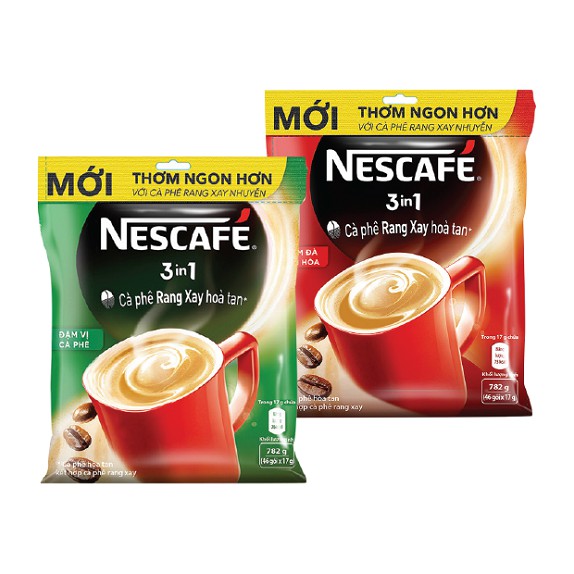 ️Túi 46 Gói Nescafé Đậm Đà Hài Hòa (17g) là loại cà phê có hương vị đậm đà có qua pha trộn theo tỉ lệ thích hợp cùng sữa và bột kem, đáp ứng sở thích thưởng thức của đại đa số người tiêu dùng. 1 ly Nescafé Đậm Đà Hài Hòa mỗi ngày sẽ giúp kích thích các giác quan cho bạn bắt đầu một ngày mới đầy hứng khởi, năng động và sáng tạo hơn. Túi 46 Gói Nescafé Đậm Vị Cà Phê (17g) được điều chế từ những cà phê Việt nguyên chất, qua sàng lọc và rang xay theo công nghệ hiện đại cho ra đời hương vị thơm ngon khó chối từ. Cà phê được điều chế dạng hòa tan dễ pha chế nhưng vẫn giữ nguyên được hương vị thuần khiết và đặc trưng của cà phê nguyên chất cho bạn thưởng thức đúng gu đắng, đậm của mình Thông tin sản phẩm: Thành phần cà phê hảo hạng Nescafé 3in1 được điều chế từ những cà phê nguyên chất, tuyển chọn kỹ lưỡng từ những hạt cà phê chất lượng cao. Loại cà phê này được rang theo kỹ thuật hiện đại ở nhiệt độ lý tưởng, đảm bảo dậy mùi và có hương vị thơm ngon hảo hạng. Thêm vào đó là các thành phần: đường, bột kem pha cà phê tạo nên hương vị mới mẻ hơn. Nescafé 3in1 Đậm Đà Hài Hòa là loại cà phê có hương vị đậm đà có qua pha trộn theo tỉ lệ thích hợp cùng sữa và bột kem, đáp ứng sở thích thưởng thức của đại đa số người tiêu dùng. Hương vị cà phê đậm đà có sự pha quyện giữa vị đắng cực chất của cà phê cùng béo, ngọt quyến rũ của sữa, đánh thức mọi vị giác của bạn ngay từ hớp đầu tiên. Dạng hòa tan tiện lợi Nescafé 3in1 Đậm Đà Hài Hòa được điều chế dạng/ bột mịn, có thể hòa tan nhanh trong nước nóng mà vẫn giữ được hương vị như ý muốn. Bạn chỉ cần pha cà phê tan đều trong nước, uống nóng hoặc thêm đá tùy thích là đã có thể thưởng thức một ly cà phê sữa đậm đà chính hiệu. Bắt đầu ngày mới hứng khởi hơn Nescafé 3in1 Đậm Đà Hài Hòa có thể kích thích các giác quan cho bạn bắt đầu một ngày mới đầy hứng khởi, năng động và tươi vui. 1 ly Nescafé 3in1 có thể giúp bạn tập trung cao độ và tăng cường trí nhớ để hoàn thành những nhiệm vụ công việc khó khăn nhẹ nhàng và sáng tạo hơn. Sản phẩm gồm 1 túi lớn Nescafé 3in1 bên trong có 46 gói nhỏ 17g, tiện mang theo thưởng thức tại văn phòng hoặc đi chơi xa, du lịch. Xuất xứ : Công ty TNHH Nestle Việt Nam. Hạn sử dụng: 09/2019