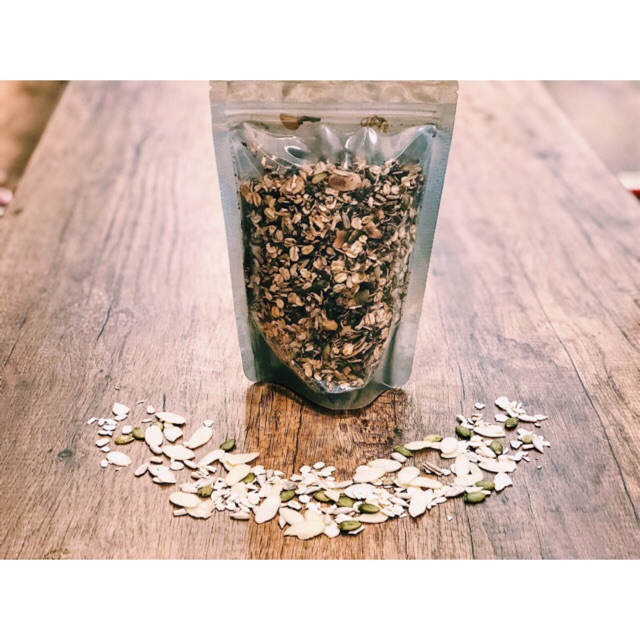 ️Granola - Ngũ cốc yến mạch ăn vặt siêu ghiền!!! - Granola phù hợp cho những dân văn phòng, công sở, thích ăn vặt mà lại không lo tăng cân nha khách ơi!!! -Sản phẩm bao gồm hạt yến mạch, hạt bí xanh, hạt hướng dương, hạnh nhân, óc chó, dừa sấy, dark chôclate. - Mình không sử dụng đường hoặc mật ong nên Granola của mình sẽ có vị hơi ngọt nhẹ từ chocolate mà thôi, thoả mãn những khách hàng sợ tăng cân nha. - 90-95% granola là chất xơ cho nên giúp cân bằng hệ tiêu hoá, hấp thụ và thải các chất béo thừa trong cơ thể - Chỉ cần bảo quản tránh ánh nắng mặt trời là có thể giữ được lâu. - Ngon hơn khi dùng với sữa, yogurt, trái cây, hoặc có thể kết hợp với các loại mousse, kem để món tráng miệng thêm phần thú vị. 85k/bịch 250gr nha khách ơi!!! Chất lượng tuyệt vời và giá rất hạt dẻ luôn ah :)