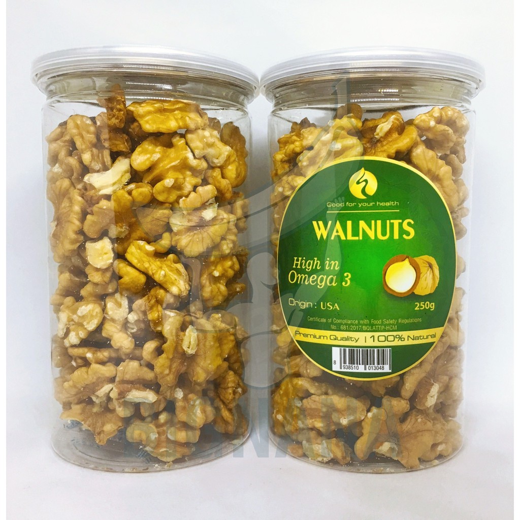 ️➥ Hạt Óc Chó tiếng Anh là Walnuts. Được trồng chủ yếu ở California walnuts – Mỹ (USA), Nga, Canada… ➥ Nước ta loại quả này khá hiếm, có kích thước nhỏ như hạt nhãn. ➥ Các nước Mỹ, Nga, Nhật, Châu Âu thì khá phổ biến vì được coi là loại “siêu thực phẩm” hay “quả thần” vì tác dụng với sức khỏe rất tốt. ➥ Công dụng Nhân Hạt Óc Chó Đã Tách Vỏ Mỹ - 250g: ➥ Tốt cho phụ nữ có thai và em bé. ?➥ Giúp phụ nữ có thai cung cấp Omega-3 (gấp 5 lần cá hồi), Vitamin E, Phốt pho, Acid Amin. ?➥ Thúc đẩy sự phát triển đại não của thai nhi và trẻ nhỏ. ?➥ Các mẹ kiên trì ăn hạt óc chó trong suốt thời gian thai kỳ, em bé sinh ra sẽ thông minh, khỏe mạnh. ?➥ Đem lại làn da mịn màng, tươi trẻ, giúp lưu thông mạch máu và chống lão hóa. ?➥ Dùng hạt óc chó trong thời gian dài sẽ giảm thiểu đáng kể các bệnh viêm nhiễm phụ khoa, u xơ tử cung, ung thư cổ tử cung và các bệnh liên quan,.. giúp chị em bớt đi nổi ám ảnh về các bệnh này. ➥ Tăng khả năng làm cha: ✪ Giúp Bổ thận, cải thiện lượng tinh binh do chứa nhiều Acid A-linolenic. Hình dáng, tốc độ di chuyển và cả sức sống của tinh trùng đều được cải thiện. ➥ Bảo vệ, cải thiện sức khỏe tim mạch do có nhiều Axit Béo Omega-3 - Khoáng chất - Vitamin. ✪ Rất tốt đối với bệnh nhân huyết áp cao, giúp lớp màng động mạch khỏe mạnh hơn. ➥ Giảm nguy cơ ung thư vú - Chiến đấu với một số bệnh ung thư. ✪ Tăng cường hệ miễn dịch, chống và làm chậm quá trình ung thư. giúp bệnh nhân ung thư phục hồi trong giai đoạn hóa trị hoặc xạ trị nhờ Hợp chất chống oxy hóa. ➥ Nhuận trường - Ngăn ngừa sỏi túi mật, táo bón mãn tính do cung cấp nhiều chất Xơ. ➥ Bảo vệ xương - Giúp xương của bạn chắc khỏe đến tuổi già. Do cung cấp nhiều Ca, K, Mg. ➥ Axit béo Omega-3, chất chiếm đến 60% bộ não. ✪ Giúp bộ não hoạt động đúng chức năng, tăng cường trí nhớ và nhận thức. ✪ Giảm nguy cơ mắc bệnh trầm cảm và các vấn đề hành vi. ➥ Tốt cho bệnh nhân tiểu đường: Tạo ra Insulin, chất mà bệnh nhân tiểu đường không có. ➥ Tránh tình trạng mất ngủ. ➥ Cách dùng Nhân Hạt Óc Chó Đã Tách Vỏ Mỹ - 250g: ➥ Ăn đều cả ngày 8 – 10 quả, chia đều thành nhiều bữa nhỏ, một món ăn vặt đầy dinh dưỡng, tốt nhất ăn dặm giữa buổi – như bữa phụ. ➥ Nam giới cải thiện chất lượng tinh trùng: dùng khoảng 75g/ngày. ➥ Dùng làm bánh, làm nhân Sôcôla, ép lấy dầu, dùng với sữa tươi, ngon hơn khi bỏ óc chó vào lò vi sóng với nhiệt độ 160 độ rồi lấy ra bóc ăn, sẽ có vị thơm và bùi hơn. ➥ Đối với người ăn kiêng nên ăn trước bữa ăn và uống nhiều nước. ➥ Bảo quản Nhân Hạt Óc Chó Đã Tách Vỏ Mỹ - 250g: ➥ Nơi thoáng mát khô ráo, thoáng mát. Tránh ánh nắng trực tiếp. ➥ Không để hở không khí, khi mở túi nên đóng kĩ sau khi sử dụng, cho vào lọ đậy kín, bảo quản tốt nhất ở ngăn mát tủ lạnh. ⛔️ Xuất xứ: Mỹ. ⛔️ Date: 1 năm (Cập nhật liên tục). #quảócchó #ócchó #occho #ócchómỹ #nhânócchó #ănkiêng #giảmcân #làmbánh #phụnữmangthai #nấuăn #vitamin #bignanastore #ănvặt #quàtặng #quàbiếu #quàtết #hạtócchó #thainhi