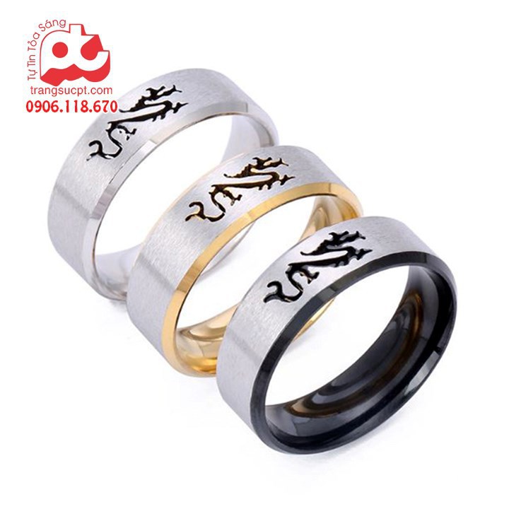 Nhẫn nam cắt laser rồng openwork pattern nhiều màu cao cấp thời trang không đen