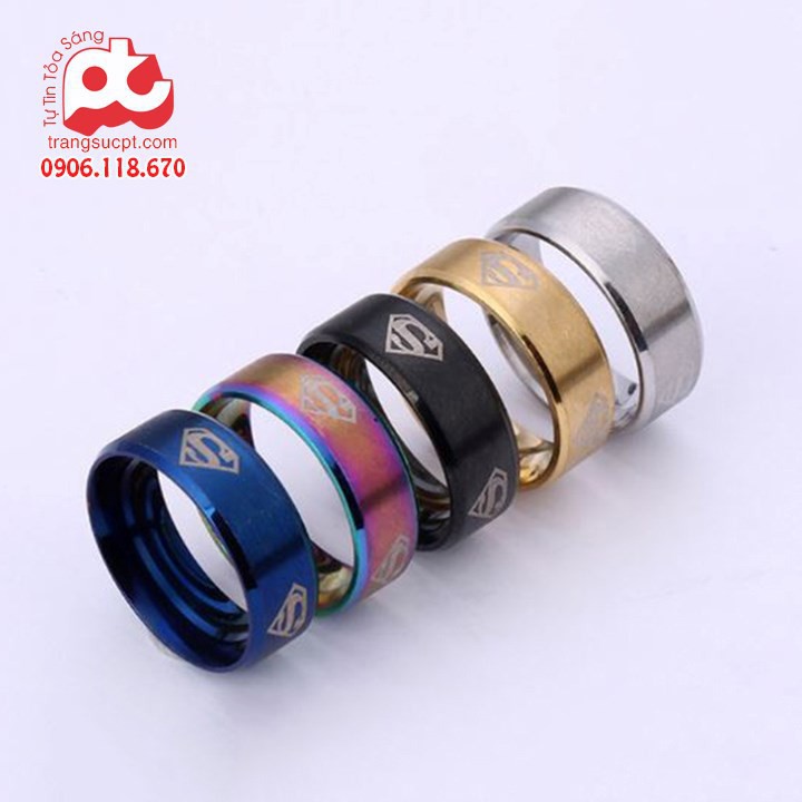 Nhẫn nam đánh dấu siêu nhân nhiều màu cao cấp thời trang không đen