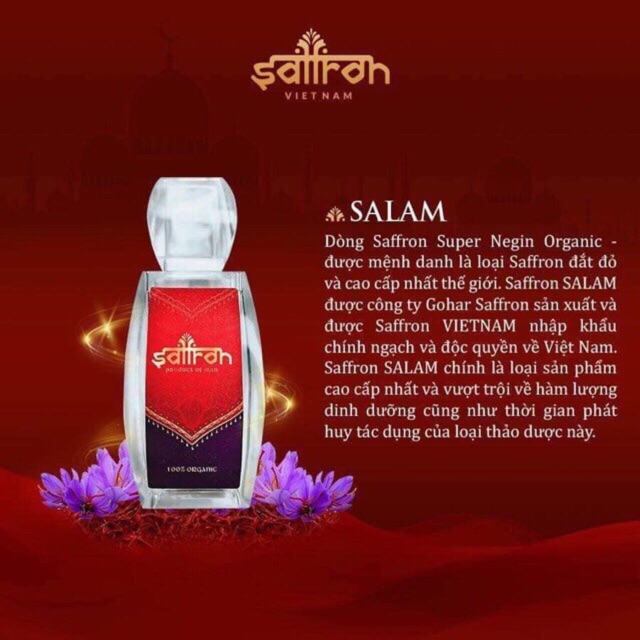 ️??➥ NGƯỜI LỚN TUỔI DÙNG LOẠI SAFFRON NÀO TỐT NHẤT ---------------------- Người lớn tuổi thường gặp nhiều vấn đề về xương khớp, đau nhức vào những ngày thời tiết thay đổi, nên rất nhạy cảm và gây ra cảm giác khó chịu, ảnh hưởng đến cuộc sống. ☘️ #Saffron chứa các hợp chống viêm, giảm đau như crocin, safranal, procrocrocin và các loại vitamin, khoáng chất giúp bồi bổ sức khỏe thể chất và giải tỏa tâm lý, tăng cường trí nhớ hiệu quả. ➥ Trong tất cả các dòng Saffron, người lớn tuổi dùng dòng SHYAM là tốt nhất. #SAFFRON_SHYAM được sản xuất bởi Edman Saffron, sản phẩm công ty này đủ điều kiện để xuất khẩu sang thị trường khó tính như Nhật Bản, Hàn Quốc và các quốc gia châu Âu. Đây là nhãn hiệu được nhập từ một nhà cung cấp hàng đầu Iran, đạt Iso 3632 - chứng chỉ Iso duy nhất quy định về CHẤT LƯỢNG của saffron. ----------------------------------------------- Hạn sử dụng: Tháng 8/2021 Xuất xứ: Iran ♨️#SAFFRON ĐẸP HƠN MỖI