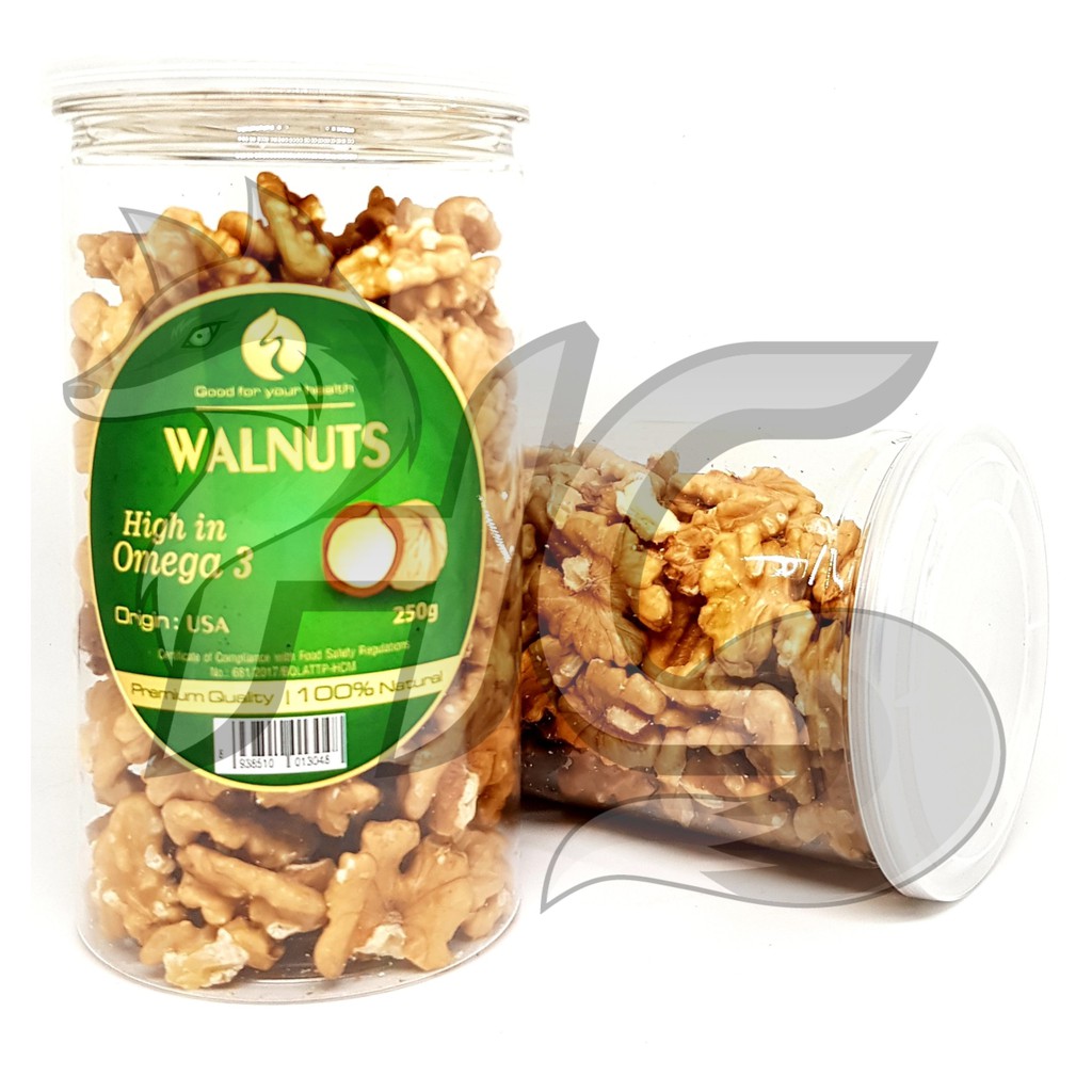 ️➡️ Quả Óc Chó tiếng Anh là Walnuts. Được trồng chủ yếu ở California walnuts – Mỹ, Nga, Canada… ➡️ Nước ta loại quả này khá hiếm, có kích thước nhỏ như hạt nhãn. ➡️ Các nước Mỹ, Nga, Nhật, Châu Âu thì khá phổ biến vì được coi là loại “siêu thực phẩm” hay “quả thần” vì tác dụng với sức khỏe rất tốt. ✔️ Công dụng Nhân Quả Óc Chó Đã Tách Vỏ Mỹ 250g: ➥ Tốt cho phụ nữ có thai và em bé. ▶ Giúp phụ nữ có thai cung cấp Omega-3 (gấp 5 lần cá hồi), Vitamin E, Phốt pho, Acid Amin. ▶ Giúp thúc đẩy sự phát triển đại não của thai nhi và trẻ nhỏ. ▶ Các mẹ kiên trì ăn hạt óc chó trong suốt thời gian thai kỳ, em bé sinh ra sẽ thông minh, khỏe mạnh. ▶ Đem lại làn da mịn màng, tươi trẻ, giúp lưu thông mạch máu và chống lão hóa. ▶ Dùng hạt óc chó trong thời gian dài sẽ giảm thiểu đáng kể các bệnh viêm nhiễm phụ khoa, u xơ tử cung, ung thư cổ tử cung và các bệnh liên quan,.. giúp chị em bớt đi nổi ám ảnh về các bệnh này. ➥ Tăng khả năng làm cha: ▶ Bổ thận, cải thiện lượng tinh binh do chứa nhiều Acid A-linolenic. Hình dáng, tốc độ di chuyển và cả sức sống của tinh trùng đều được cải thiện. ✔️ Bảo vệ, cải thiện sức khỏe tim mạch do có nhiều Axit Béo Omega-3 - Khoáng chất - Vitamin. ▶ Rất tốt đối với bệnh nhân huyết áp cao, giúp lớp màng động mạch khỏe mạnh hơn. ➥ Giảm nguy cơ ung thư vú - Chiến đấu với một số bệnh ung thư. ▶ Tăng cường hệ miễn dịch, chống và làm chậm quá trình ung thư. giúp bệnh nhân ung thư phục hồi trong giai đoạn hóa trị hoặc xạ trị nhờ Hợp chất chống oxy hóa. ➥ Nhuận trường - Ngăn ngừa sỏi túi mật, táo bón mãn tính do cung cấp nhiều chất Xơ. ➥ Bảo vệ xương - Giúp xương của bạn chắc khỏe đến tuổi già. Do cung cấp nhiều Ca, K, Mg. ➥ Axit béo Omega-3, chất chiếm đến 60% bộ não. ▶ Giảm nguy cơ mắc bệnh trầm cảm và các vấn đề hành vi. ▶ Giúp bộ não hoạt động đúng chức năng, tăng cường trí nhớ và nhận thức. ➥ Tốt cho bệnh nhân tiểu đường loại 2: Tạo ra Insulin, chất mà bệnh nhân tiểu đường không có. ➥ Tránh tình trạng mất ngủ. Là một nguồn tự nhiên và phong phú chất Melatonin. ✔️ Cách dùng Nhân Quả Óc Chó Đã Tách Vỏ Mỹ 250g: ➥ Nam giới cải thiện chất lượng tinh trùng: dùng khoảng 75g/ngày. ➥ Ăn đều cả ngày 8 – 10 quả, quả chia đều thành nhiều bữa nhỏ, như một món đồ ăn vặt đầy dinh dưỡng, tốt nhất ăn dặm giữa buổi – như bữa phụ. ➥ Làm bánh, nhân Sôcôla, ép lấy dầu, dùng với sữa tươi, ngon hơn khi bỏ vào lò vi sóng với nhiệt độ 160 độ rồi lấy ra bóc ăn, sẽ có vị thơm và bùi hơn. ➥ Người ăn kiêng nên ăn trước bữa ăn và uống nhiều nước. ✔️ Bảo Quản Nhân Quả Óc Chó Đã Tách Vỏ Mỹ 250g: ➥ Nơi thoáng mát khô ráo, thoáng mát. Tránh ánh nắng trực tiếp. ➥ Không để hở không khí, đóng kĩ sau mỗi lần sử dụng, cho vào lọ đậy kín, bảo quản tốt nhất ngăn mát của tủ lạnh. + Xuất Xứ: Mỹ. + Date: 1 năm (Cập Nhật Liên tục). #quảócchó #ócchó #occho #ócchómỹ #nhânócchó #ănkiêng #giảmcân #làmbánh #phụnữmangthai #nấuăn #vitamin #House_chichi #ănvặt #quàtặng #quàbiếu #quàtết #hạtócchó #thainhi