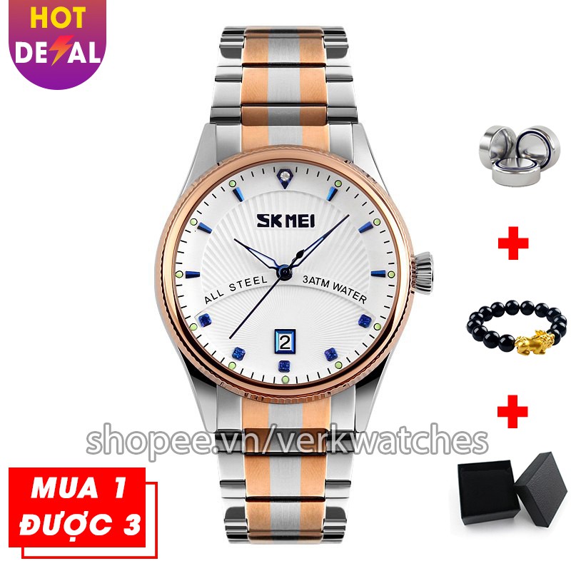 ️➥ CHÚNG TÔI CAM KẾT ✔ MẪU MÃ, CHẤT LƯỢNG sản phẩm giống như mô tả ✔ Giao hàng COD toàn quốc ✔ BẢO HÀNH 12 tháng, thay pin MIỄN PHÍ trọn đời ✔ Hỗ trợ ĐỔI TRẢ trong vòng 7 ngày ➥ Giới thiệu sản phẩm ĐỒNG HỒ NAM DÂY THÉP KHÔNG GỈ CAO CẤP SKMEI VK019 - Verk Watches ⌚️ Là sự kết hợp hài hòa giữa kiểu dáng và chất lượng, những chiếc đồng hồ đến từ thương hiệu SKMEI xứng đáng là một lựa chọn của phái mạnh. Chiếc đồng hồ SKMEI được thiết kế để dành riêng cho những chàng trai trẻ trung, năng động. Sở thiết kế mặt tròn nam tính và mạnh mẽ, các chi tiết trang trí như vạch chia giờ, kim đồng hồ... được bố trí một cách hài hòa, đạt tính thẩm mỹ cao, sản phẩm góp phần tạo nên phong cách riêng cho bạn. Hơn thế nữa với tính ứng dụng cao, bạn có thể kết hợp chiếc đồng hồ này với những bộ trang phục khác nhau để tạo nên phong cách riêng đầy cuốn hút. ➥ THÔNG SỐ KỸ THUẬT ✔ Thương hiệu: Skmei ✔ Kiểu máy: Quartz ✔ Dành cho: Nam ✔ Chất liệu vỏ: Thép không gỉ ✔ Chất liệu mặt trước: Kính cứng ✔ Chất liệu dây: Thép không gỉ ✔ Kích thước mặt: 38mm ✔ Kích thước dây: 20mm ✔ Độ dày mặt: 10mm ✔ Số kim: 3, có lịch ✔ Độ chịu nước: 3ATM ✔ Năng lượng sử dụng: Pin ✔ Bảo hành: Bảo hành đồng hồ 12 tháng ➥ GỢI Ý SỬ DỤNG VÀ BẢO DƯỠNG ❌ Nên tránh: - Va chạm và tiếp xúc với chất ăn mòn, nhiệt độ cao hoặc từ trường mạnh. - Sử dụng bất kì dung môi, chất làm sạch, chất tẩy công nghiệp, chất dính, sơn hoặc các chất xịt mỹ phẩm. - Đeo đồng hồ cùng các vòng đeo tay vì dễ tạo vết xước hay làm hỏng mặt đồng hồ. - Chỉnh nút chỉnh giờ khi đồng hồ bị ướt. - Để đồng hồ nơi nhiệt độ thay đổi đột ngột. - Sử dụng, nhấn các nút hoặc cài đặt ở dưới nước. ☑ Nên làm: - Làm sạch đồng hồ theo định kỳ vải mềm hơi ẩm để gia tăng tuổi thọ đồng hồ. - Nếu xuất hiện hơi nước ngưng tụ, cần mang đồng hồ đến Trung Tâm Dịch Vụ Khách Hàng của các hãng càng nhanh càng tốt để giảm thiểu hư hỏng bên trong. - Thay pin khi đồng hồ chạy sai giờ hoặc chuyển động kim giây không đều vì rò rỉ điện do pin chết có thể gây ra hỏng hóc nghiêm trọng cho đồng hồ. - Tắt nguồn khi không được sử dụng trong thời gian dài, để kích hoạt công tắc bảo quản nguồn đặc biệt và tránh hao pin. ➥ Xem thêm sản phẩm tại: #VerkStore #đồnghồnam #donghonam #dongho #đồnghồ #donghogiare #đồnghồgiárẻ #chốngnước #đồnghồ6kim #chronograph #đồnghồthểthao #đồnghồđiệntử #đồnghồcơ #automatic