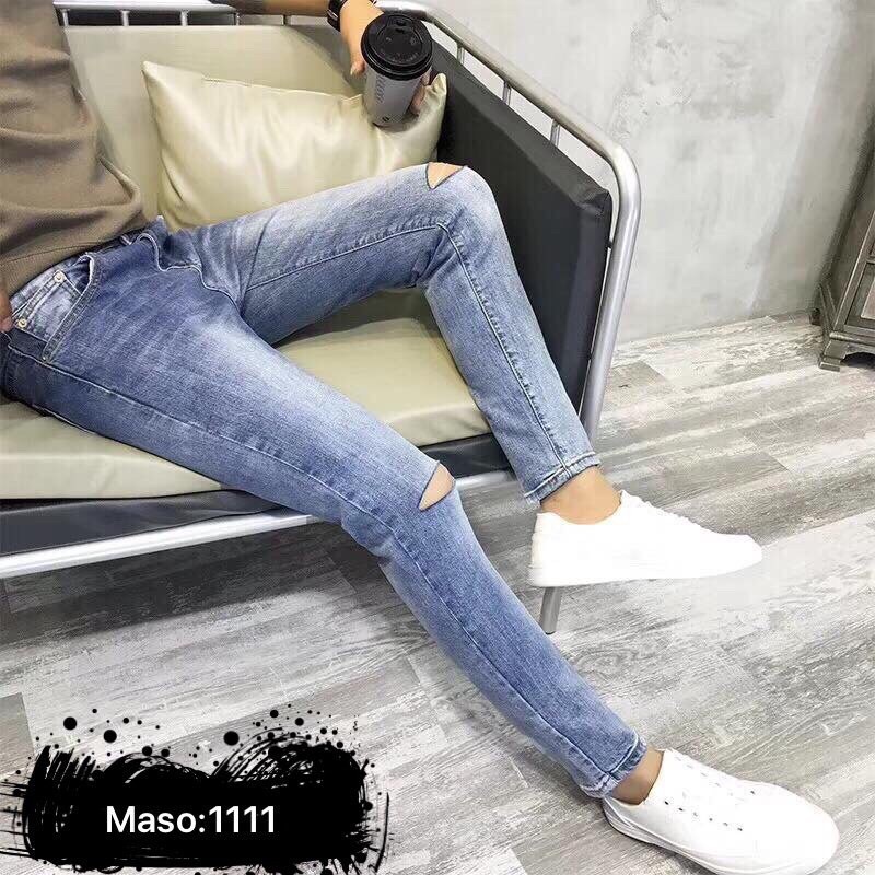 Quần Jean Nam Cao Cấp TS1111 Xanh Rách Gối