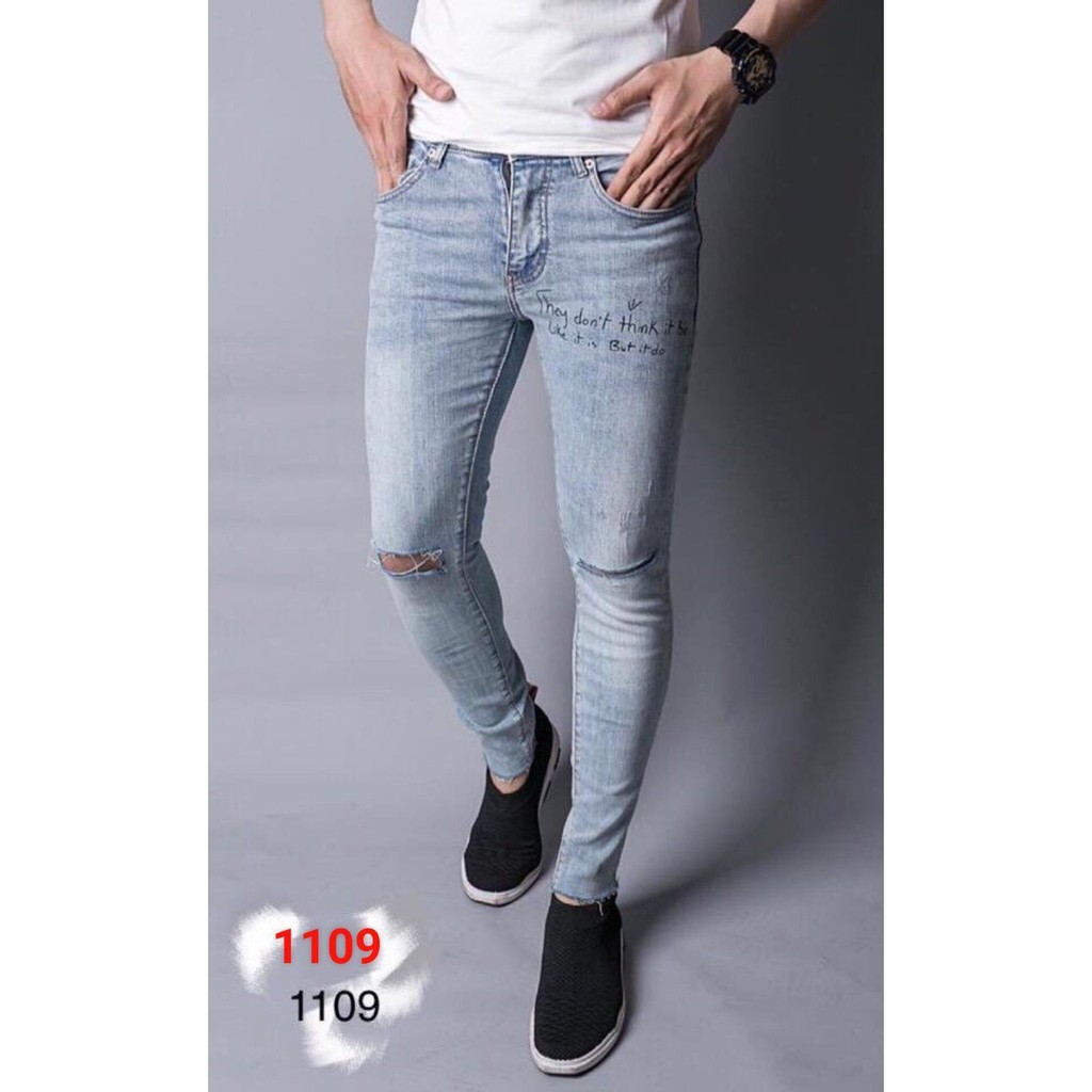 Quần jean nam wash bạc rách gối cá tính, MS 1109