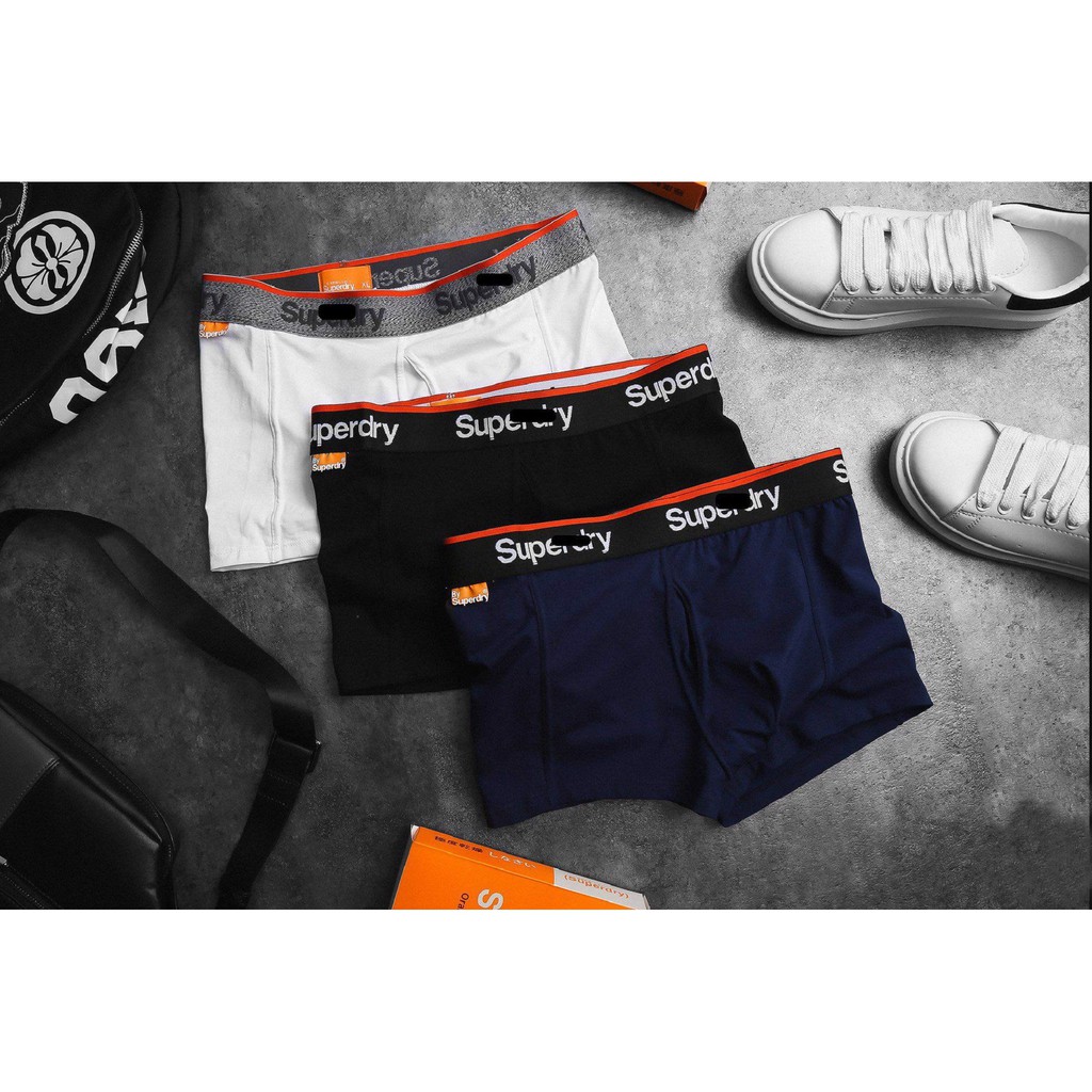 ️1 hộp gồm 3 cái quần boxer SuperDry . Vải cotton mặc mịn, mát, thoải mái vận động. Kiểu dáng đẹp, sang trọng, thương hiệu SuperDry Có đầy đủ các size: M L XL Cân nặng 55 - 65 kg: Size M Cân nặng 65 - 75 kg: Size L Cân nặng 75 - 85 kg: Size XL Có 4 màu ( đen, trắng, xám, navy ) được lấy ngẫu nhiên. Hàng cao cấp, chất lượng, giao dịch vận chuyển nhanh, thái độ phục vụ tốt luôn làm hài lòng quý khách. Số lượng có hạn. Cám ơn quý khách đã ghé thăm shop.