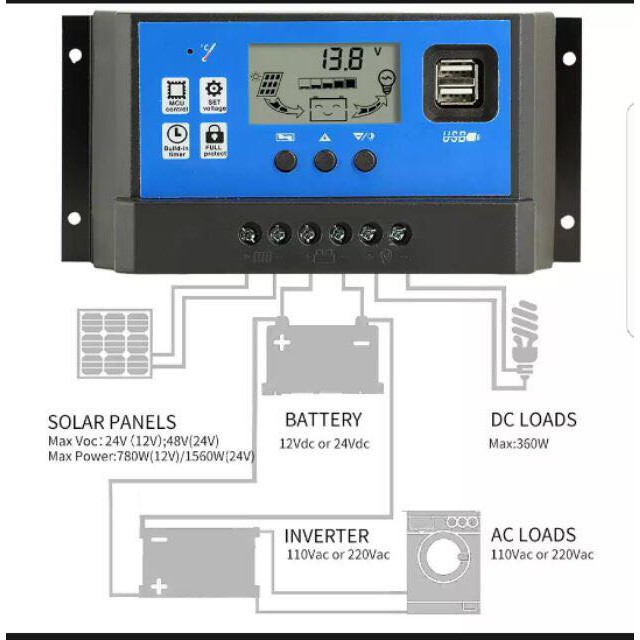 ️Sạc PWM dùng cho tấm pin năng lượng mặt trời,chức năng điều chỉnh dòng điện khi lạp vào ắc quy ngăn ngược dòng và tự ngắt khi bình đã đầy