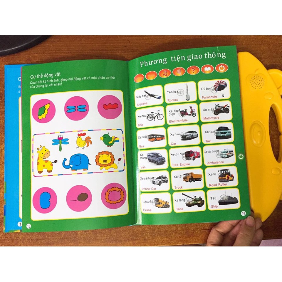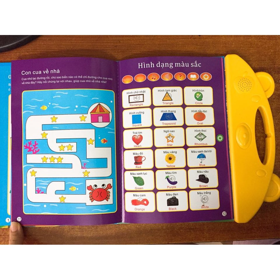 ️+ THÔNG TIN CHI TIẾT VỀ SẢN PHẨM: ?Bộ sách với các trang sách trình bày theo từng chủ đề về bảng chữ cái, con số, hình học, vật dụng gia đình, phương tiện giao thông, con vật, hoa quả, thành viên gia đình... - Bé chỉ cần chọn hệ ngôn ngữ và nhấn vào hình ảnh cần học là có thể nghe và phát âm theo sách - Sách nói song ngữ Anh Việt cho trẻ 3-10 tuổi được thiết kế với âm giọng chuẩn của tiếng Việt và Tiếng Anh. - Sách còn được tích hợp nhiều câu truyện cổ tích hay mà các bé rất thích được nghe kể. chỉ cần nhấn nút trên bảng điều khiển và chọn câu truyện cần nghe. - Ngoài ra sách còn có chức năng nghe nhạc và kiểm tra bài đã học, giúp ba mẹ luôn kiểm tra được những gì bé đã học được.