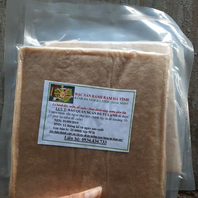 ️⭕ BÁNH ĐA NEM - VỎ RAM HÀ TĨNH ĂN LÀ MÊ❗❗❗Hàng nhà làm ❤❤❤ tệp/50lá ✅Nguyên liệu: Gạo + Mật Mía Bánh được phơi sương nên có độ mềm dẻo dễ cuốn, không phơi nắng khô giòn như vỏ nem Bắc, không sử dụng chất bảo quản nên rất yên tâm khi sử dụng ♻Ưu điểm: Lá bánh mềm, dễ cuốn, không lo rách, dính hay vỡ nem. Không ngấm dầu mỡ, bánh nhạt không mặn, vỏ màu vàng nâu khi rán rất đẹp mắt và giòn rụm. Nếu bạn Nobita có thể gói luôn 1 lần rồi cho cấp tủ đông kh cần rán qua đảm bảo bánh kh bị dính vào nhau ăn đến đâu lấy ra rán đến đó. ♻Lưu ý: Khi cuốn nem để nem giòn rụm thì cuốn nhân ngắn cỡ ngón tay, không gói quá to. Đun dầu sôi già thì thả nem vào ngập 2/3 nem. Chín vàng vớt ra để ráo, tránh ấp lên nhau lúc nóng sẽ bị ỉu. Khi gói đặt chéo lá bánh hình thoi sẽ quấn được nhiều vòng hơn. Nem sẽ giòn hơn ♻Cách bảo quản: Vì bánh không có chất bảo quản nên cần được bảo quản bằng ngăn đá tủ lanh. Khi lấy ra cuốn chỉ cần để khoảng 10p đảm bảo lá bánh mềm dẻo như lúc đầu (Bánh khi lấy trong tủ lạnh ra để cuốn nên để nguyên trong túi, không nên bỏ ra ngoài lá bánh dễ bị khô cứng, gói tới đâu lấy từng cái ra tới đó). ??➥ Nhận sỉ từ 10 tập ☎️ 0934,434,733 #voramhatinh #banhdanemhatinh