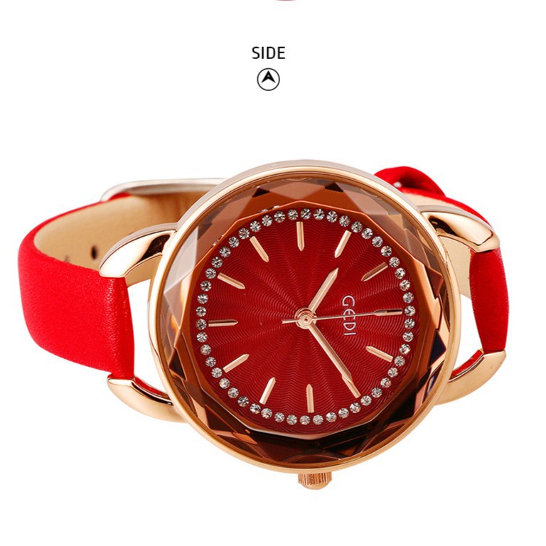 ️** Đồng hồ Gedi sở hữu thiết kế sang trọng với các chi tiết được chế tinh xảo với nhiều mẫu mã đẹp mắt nên trong thời gian đón nhận được rất nhiều sự quan tâm từ những người yêu thích đồng hồ . **Bên cạnh đó, với chiếc đồng hồ trên tay bạn có thể xem giờ bất cứ lúc nào và bỗng nhiên chiếc đồng hồ nhỏ xinh dường như trở thành niềm đam mê bất tận làm bạn không thể rời mắt . **Hãy biến chiếc đồng hồ nhỏ xinh trở thành món đồ trang sức yêu thích và tạo phong cách ấn tượng cho riêng mình. ☀ THÔNG TIN SẢN PHẨM ✔ Thương hiệu: GEDI ✔ Kích thước mặt: 32mm ✔ Kiếu Máy: Quartz (rất bền) ✔ Chất liệu dây: Dây da cao cấp ✔ Khả năng chịu nước: 3ATM (rửa tay, đi mưa... Nên tránh tiếp xúc với hóa chất như xà phòng, nước tẩy rửa, không mang khi bơi lội...) ✔ Bảo hành: 6 tháng ✔ Mẫu mã mới nhất, hợp thời trang nhất để thể hiện gu thẩm mỹ và cá tính của riêng mình ✔ Vạch chia rõ ràng và chi tiết từng milimets ✔ Mặt kính Mineral có độ cứng cao, ngăn chặn trầy xước hiệu quả ✔ Cam kết giao sản phẩm 100% giống như hình ảnh và mô tả