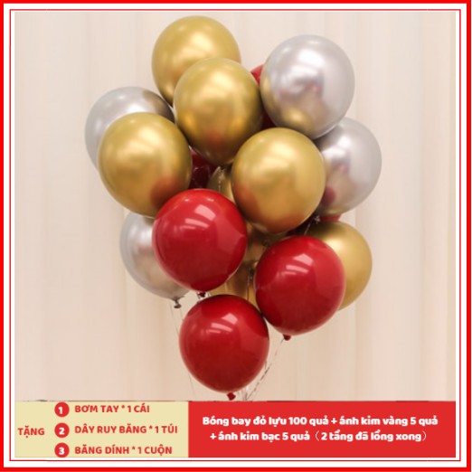 ️Set BB10 gồm có : Bóng bay đỏ lựu 100 quả (2 tầng đã lồng xong) + ánh kim vàng 5 quả + ánh kim bạc 5 quả Tặng kèm: 1 bơm hơi + 1 ruy băng + 1 keo dán Tất cả sản phẩm là hàng có sẵn tại shop