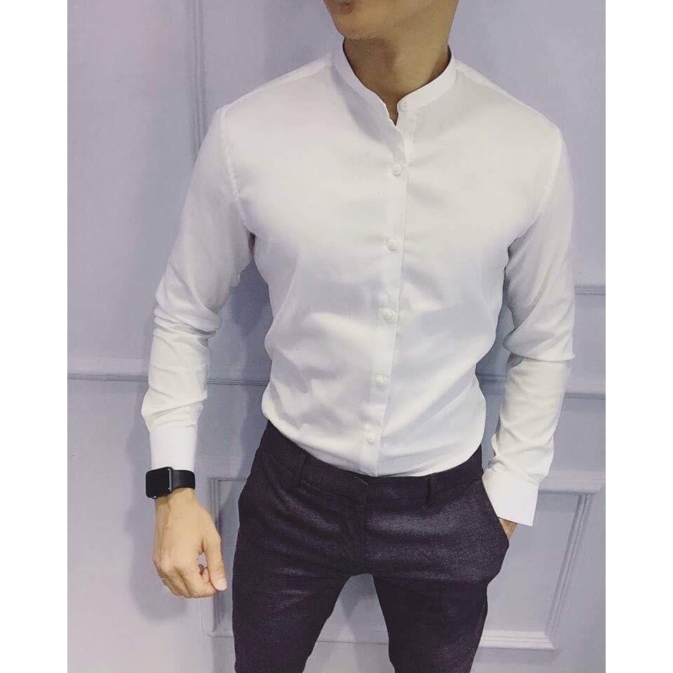 Siêu Giảm Giá HÀNG TỐT Áo sơ mi nam cổ tàu vải Thái bền đẹp màu trắng Cam Kết Giống Hình (Cam kết giống hình) - Cổ tàu