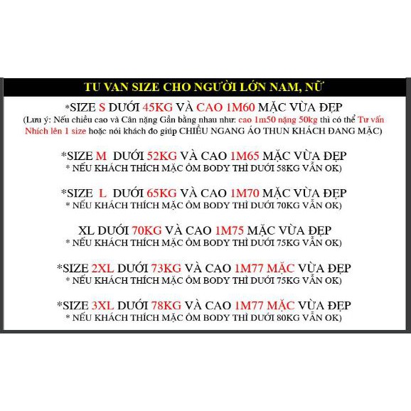 ️Thời Trang #AquaMen Xin chào quý khách! [Mô tả chi tiết sản phẩm] • Chất liệu thun mềm mại co giãn tốt , thoáng mát • Thiết kế thời trang phù hợp xu hướng hiện nay • Kiểu dáng đơn giản dễ mặc, dễ phối đồ, thích hợp đi chơi đi làm đi dạo phố • Áo thun được thiết kế vể đẹp trẻ trung năng động nhưng không kém phần mạnh mẽ. • Áo được thiết kế với phom vừa người, không rộng • Bảo hành in hình 3 năm Áo thun trơn nam form rộng phong cách #hànquốc - Thời Trang AquaMen : Chất liệu thun mềm mại, thoáng mát, thấm hút tốt, không lo hầm bí khi mặc. Thiết kế cổ tròn, tay ngắn mang lại cho phái mạnh phong cách nam tính và lịch lãm khi mặc hàng ngày . #Áothunnam là một loại trang phục có mặt trong tủ đồ của tất cả các chàng trai. Nếu chiếc áo sơ mi mang lại cho các quý ông vẻ thanh lịch, đứng đắn thì áo thun nam lại tạo cho họ phong cách trẻ trung, cá tính đầy cuốn hút. Gần đây, những chiếc áo thun nam trơn luôn là một mẫu trang phục được cánh mày râu lựa chọn bởi lẽ nó dễ dàng khoe được body khỏe khoắn, săn chắc và tiện dụng trong việc tạo cho phái mạnh vẻ ngoài trẻ trung năng động đầy cá tính khi xuống phố hay tham gia các hoạt động thật thoải mái nhưng vẫn hợp xu hướng thời trang. Điều chắc chắn là bạn sẽ gây ấn tượng mạnh đấy nếu là lần đầu tiên diện trang phục này đến công sở. Đừng quên kết hợp thêm với vest hoặc áo khoác bên ngoài sẽ tôn lên nét khỏe khoắn, nam tính của bạn hơn đấy nhé. + Cách Chọn Size Cho Vừa Ý : [Lưu ý] : Nếu chiều cao, cân nặng gần như nhau Ví Dụ : Cao 1m50 nặng 50kg thì mặc nhích lên 1 size. Hoặc nếu cao 1M70 nặng 65kg muốn mặc vừa thoải mái một chút thì từ size L lên size XL. Đối với Nữ muốn mặc thoải mái có thể nhích lên 1 hoặc 2 size so với bảng size tiêu chuẩn để mặc theo ý muốn. • Kích thước: Size S, M , L , XL , XXL,XXXL + Size S dành cho người dưới 45KG - cao 160cm mặc vừa đẹp + Size M dành cho người dưới 52KG - cao 165cm mặc vừa đẹp + Size L dành cho người dưới 65KG - cao 170cm mặc vừa đẹp + Size XL dành cho người dưới 70KG - cao 175cm mặc vừa đẹp + Size 2XL dành cho người dưới 73KG - cao 177cm mặc vừa đẹp + Size 3XL dành cho người dưới 78KG - cao 177cm mặc vừa đẹp Xuất Xứ : Việt Nam Đ/c : Số 119 đường Hoàng Hoa Thám - P Thị Nải - TP Quy Nhơn - Bình Định Hotline : 0393 690 289 Xưởng in áo AquaMen! Chúng tôi xin cảm ơn!