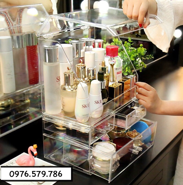 ️[ Size 29.5 cm] Tủ đựng mỹ phẩm có nắp + ngăn kéo 3 ngăn - Chất liệu : mica trong suốt - Kích thước : 29.5 x 19.5 x 39 cm - Tủ có nắp để mỹ phẩm vừa gọn vừa tiện lợi, không bị bụi bẩn,