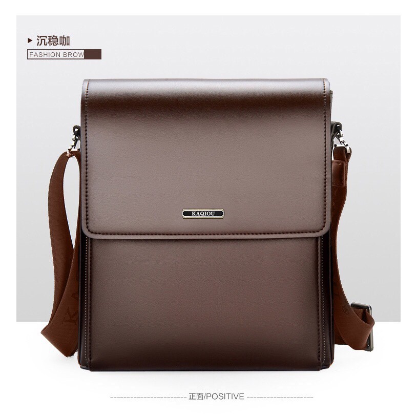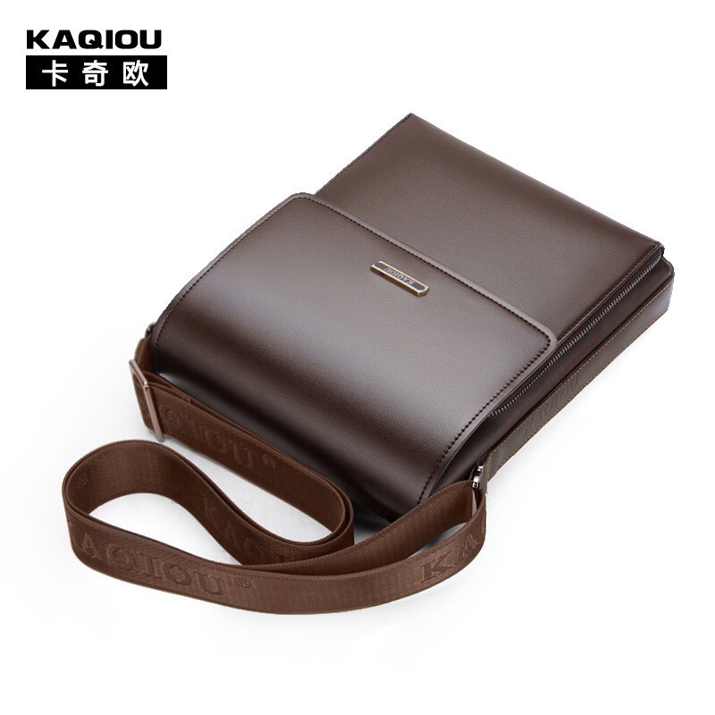 [TẶNG CHAI LAU ĐỒ DA] Túi đeo chéo da bò thật cao cấp KAQIOU - KT:C27xR24xS5 cm (Màu: Nâu - Đen)