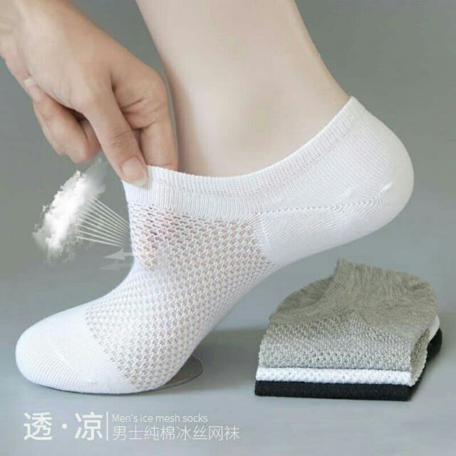 ️TẤT NAM THÔNG HƠI THOÁNG KHÍ Được làm từ sợi cotton bông mềm mịn, hút ẩm tốt Tất được thiết kế dệt dạng lưới thoáng khí, chống hôi chân kết hợp công nghệ kháng khuẩn, giữ chân khô thoáng, ngăn ngừa mùi Tất thông hơi nam có độ co dãn tốt, độ bền cao Màu sắc: đen, trắng, ghi Kích thước:.free sz, phù hợp với chân.mang giày sz 37-42