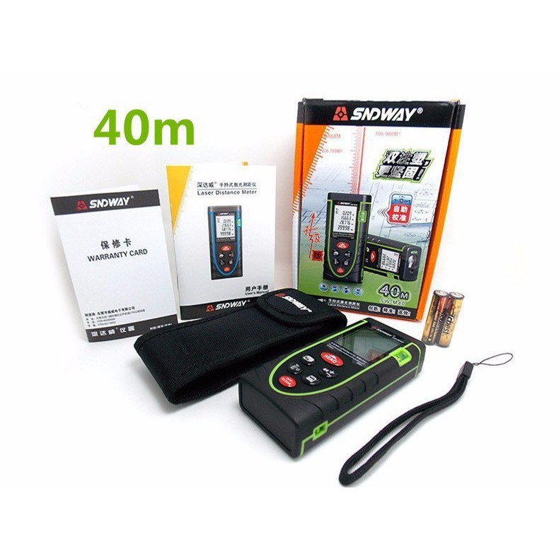 ️Máy đo khoảng cách Laser SNDWAY 40M Máy đo khoảng cách Laser SNDWAY 40M là dòng thước đo khoảng cách bằng công nghệ phản xạ tia Laser tiên tiến trên thế giới.Máy đo khoảng cách Laser SNDWAY 40M có thiết kế nhỏ gọn dễ thao tác,khả năng đo với độ chính xác cực cao,với nhiều chức năng đo tiện lợi. Tính năng của Máy đo khoảng cách Laser SNDWAY 40M Đo khoảng cách từ máy tới điểm cần đo với độ chính xác cao.Khoảng cách đo tối đa 40m Đo nhanh khoảng cách,diện tích và thể tích của vật Đo gián tiếp dựa theo định lý Pythagore Lưu trữ,hiển thị giá trị lớn nhất và nhỏ nhất của các lần đo đạc Chuyển đổi đơn vị đo :M-inch-feet Đèn laser định hướng xác định mục tiêu cần đo Màn hình LCD Blacklit hỗ trợ đèn nền giúp quan sát được kết quả đo với 4 dòng và hỗ trợ nhìn kết quả được trong những điều kiện ánh sáng yếu Lưu trữ tới 99 kết quả đo có thể xem lại các kết quả đo này Báo chỉ thị mức pin thấp Chế độ tắt tự động hoặc tắt bằng tay Tiêu chuẩn IP54 giúp chống bụi bẩn hiệu quả Được sử dụng rộng rãi trong các ngành công nghiệp xây dựng và các ngành công nghiệp khác hay là các khu vực lớn cần xác định được khoảng cách cần đo đạt nhanh nhất Sản phẩm Máy đo khoảng cách Laser SNDWAY 40M được bảo hành chính hãng 12 tháng #thuocdokhoangcach #Thướcđokhoảngcáchlaser #Thướcđokhoảngcách40m #ThướcđokhoảngcáchLaserSNDWAY40M